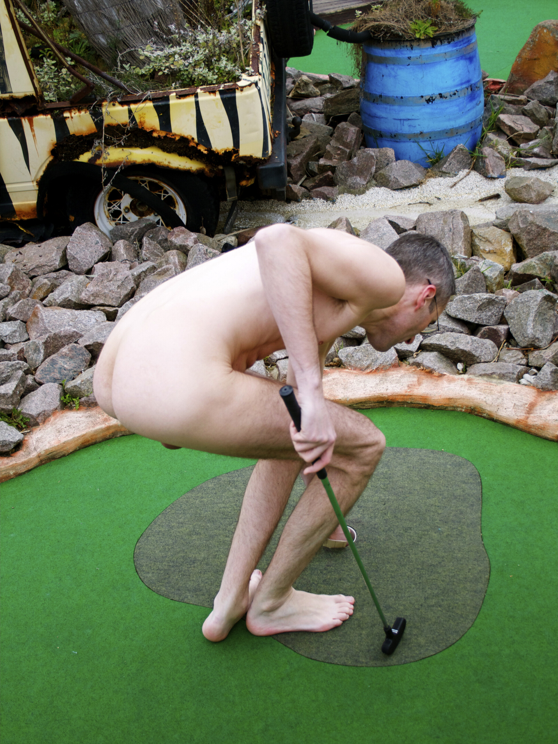 So we got under way and we all got round comfortably with several minutes to spare. I may even have finished a couple of shots under par (or over), despite nightmares at the start and finish, and hitting a photographer’s foot halfway round. Strangely, however, the fearsome cold didn’t seem nearly so bad once we were naked and well into the game. Concentration is a wonderful insulator. As is the sheer fun of it.