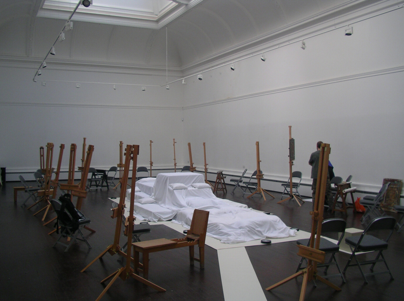 The event was scheduled for 10am to 3pm. There would be short poses to begin with, followed by a two-hour pose-a-thon (short break permitted), and a ninety-minute pose, then another short pose or two, and finally a novel tug-of-war pose with all models pulling on a rope fixed at one end of the gallery. A musician was employed to provide gentle live music from one corner. Artists assembled in great numbers, possibly as many as fifty, and gave a marvellous ovation of applause when the end came.