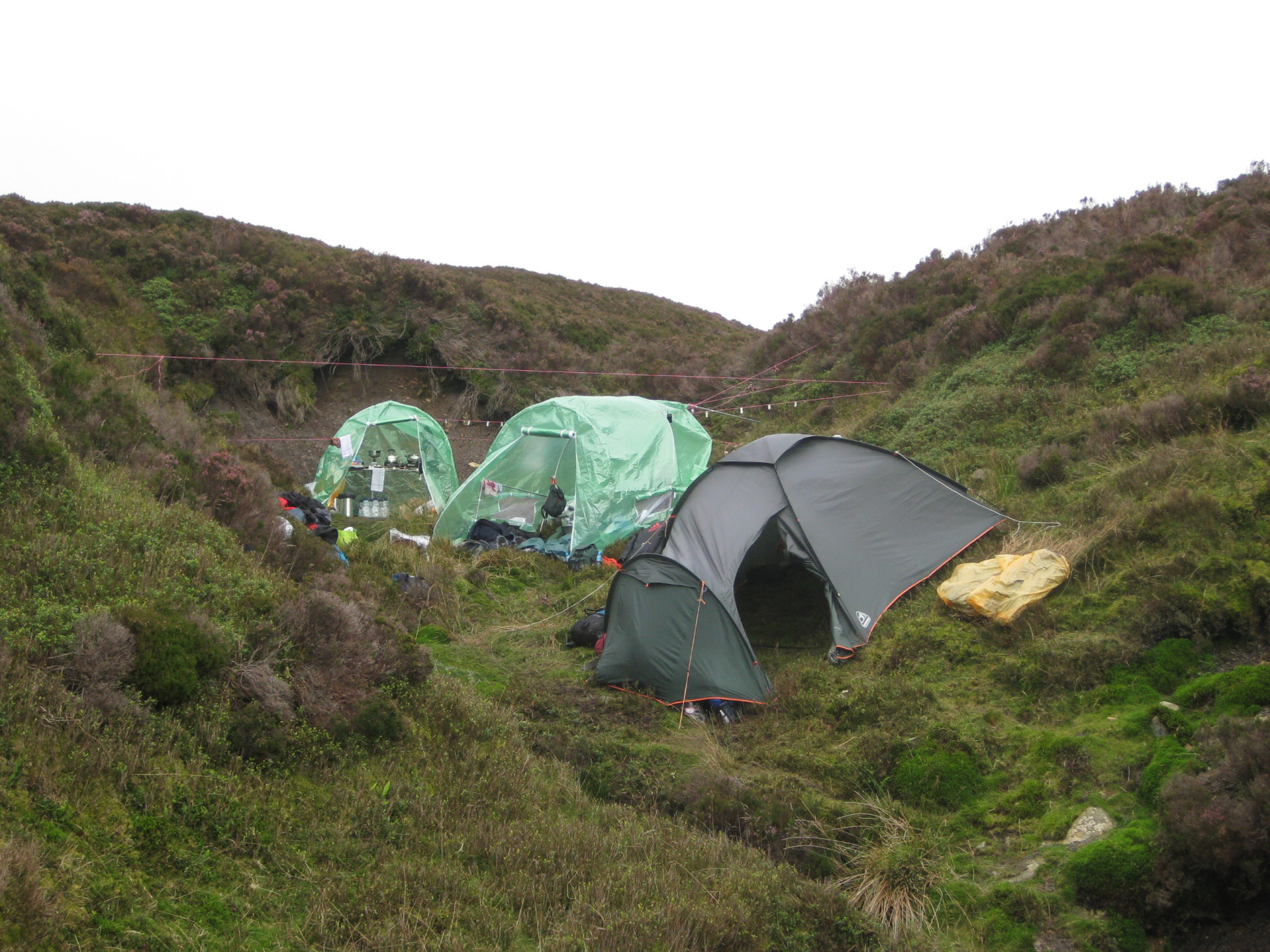 Over two days, along with 24 other models, the intention was to take four forty-minute shifts in foetal positions within semi-circular dry stone grouse-shooting butts dotted about on the wild hills while audience members hiked among us. I was in a team of three, with Anne and Janet, rotating between two butts and the hidden base camp. At any given time, two of us would be laying naked and isolated in the butts while the other was back at base, five minutes’ walk away.