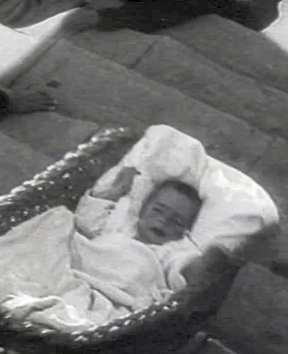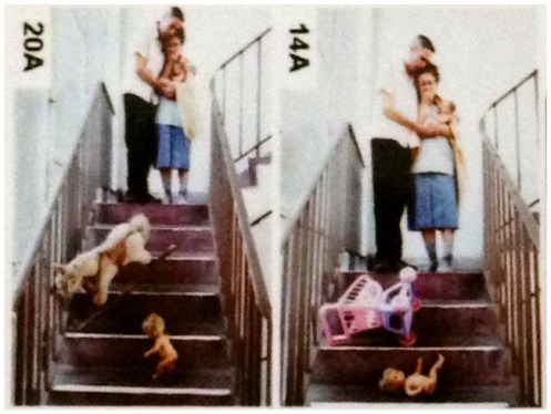 We weren’t quite finished, though. The three of us left the flat taking the doll baby, a small plastic pram and a little furry rocking horse as props to set about recreating our own mini tableau from Eisenstein’s ‘Battleship Potemkin‘ on an outside stairwell.
