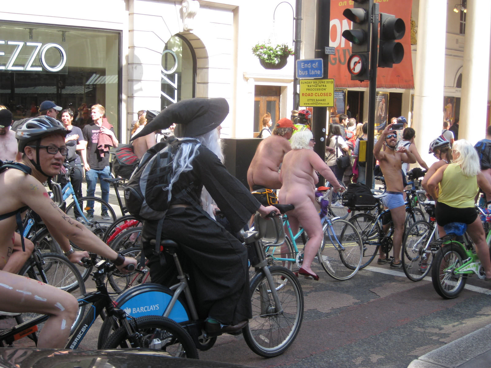 An undisputed highlight of the naked events calendar is the World Naked Bike Ride (WNBR). Thousands of people gather in scores of cities around the globe, stripping off and jumping on their bicycles to ‘protest oil dependency and celebrate the power and individuality of our bodies‘. The tenth annual London Naked Bike Ride took place on 8 June 2013. As in 2009, 2011 and 2012, I cast off my own clothes and saddled up.