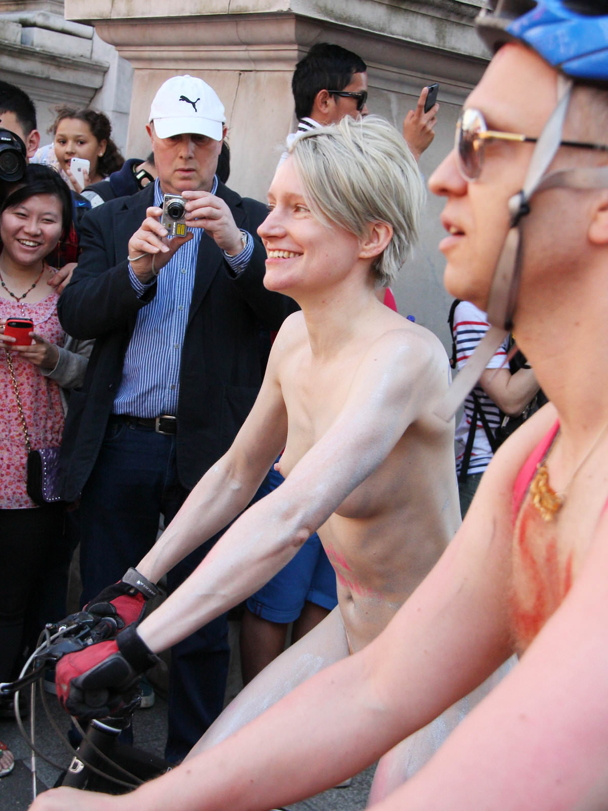The Lincoln’s Inn stop allowed us to dismount, stretch, chat with friends, take a toilet break and generally chill out. The most extraordinary thing – which I only appreciate now with hindsight – is that by this point I was totally oblivious to the fact we were all naked. Indeed, I really don’t know if I stopped taking it for granted until we returned to riding through the cheering masses.