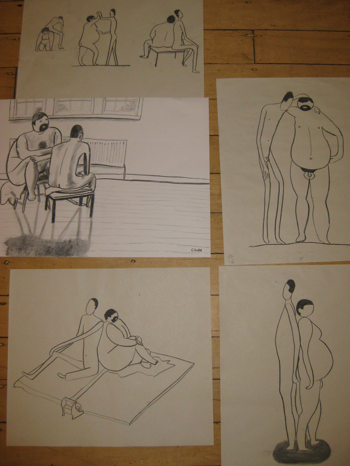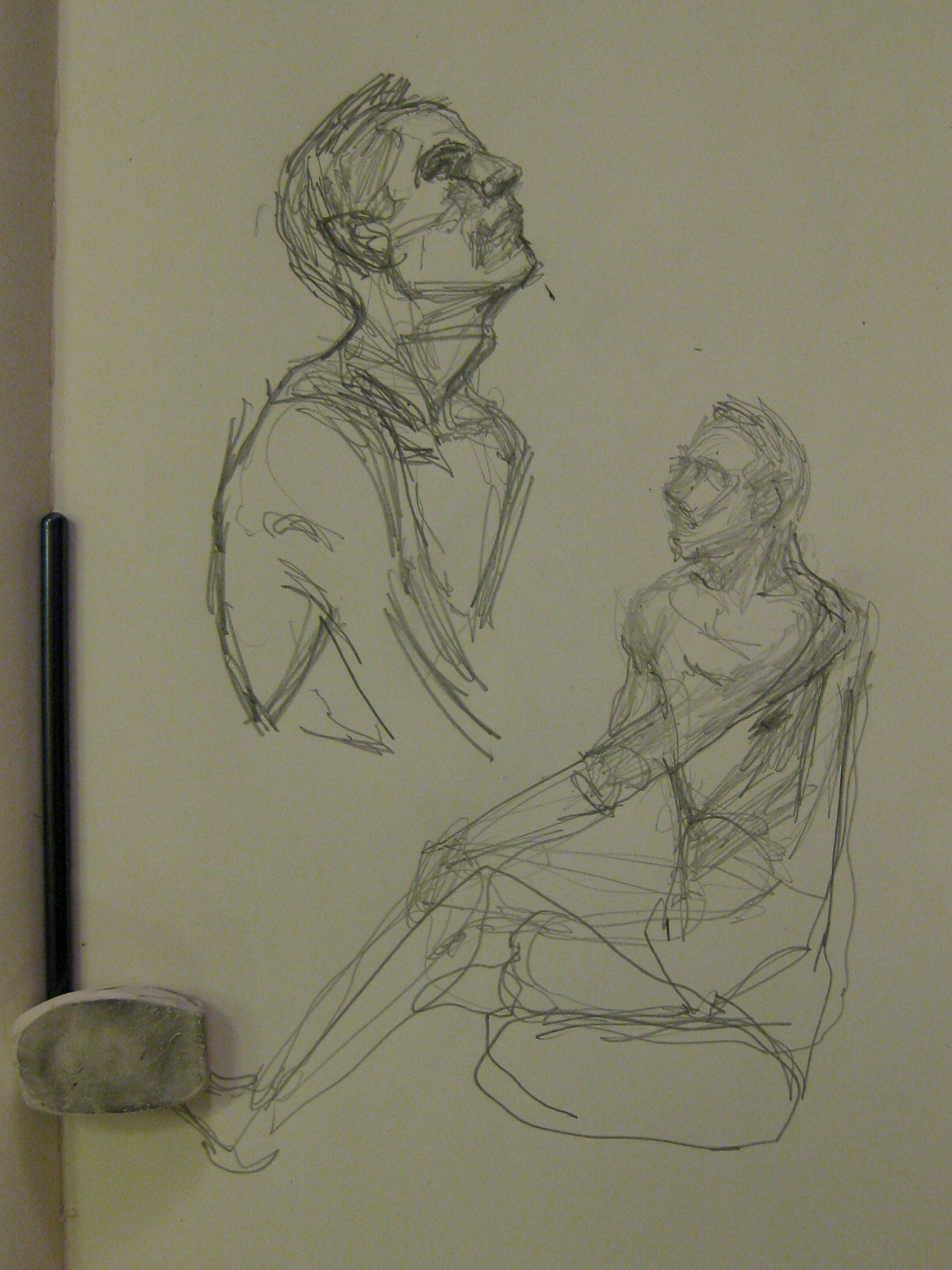 I was introduced to my co-model, Maurice, just fifteen minutes before we were due to begin. Together we were briefed by Anya, who organises all the bookings: the group includes many experienced artists who would appreciate models that made an effort to be interesting. Interaction, angles and foreshortening were to be our watchwords.