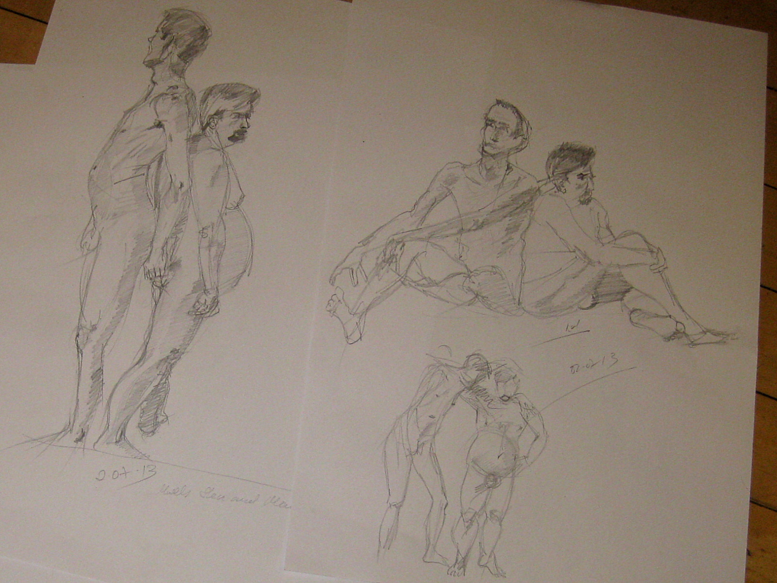 Working with Maurice was superb. I considered him the senior partner, being older and with more years’ life modelling experience behind him, but we gelled immediately. More by chance than design, our contrasting body-types offered the artists variety before we’d even got into pose. Physical contact was maintained throughout.