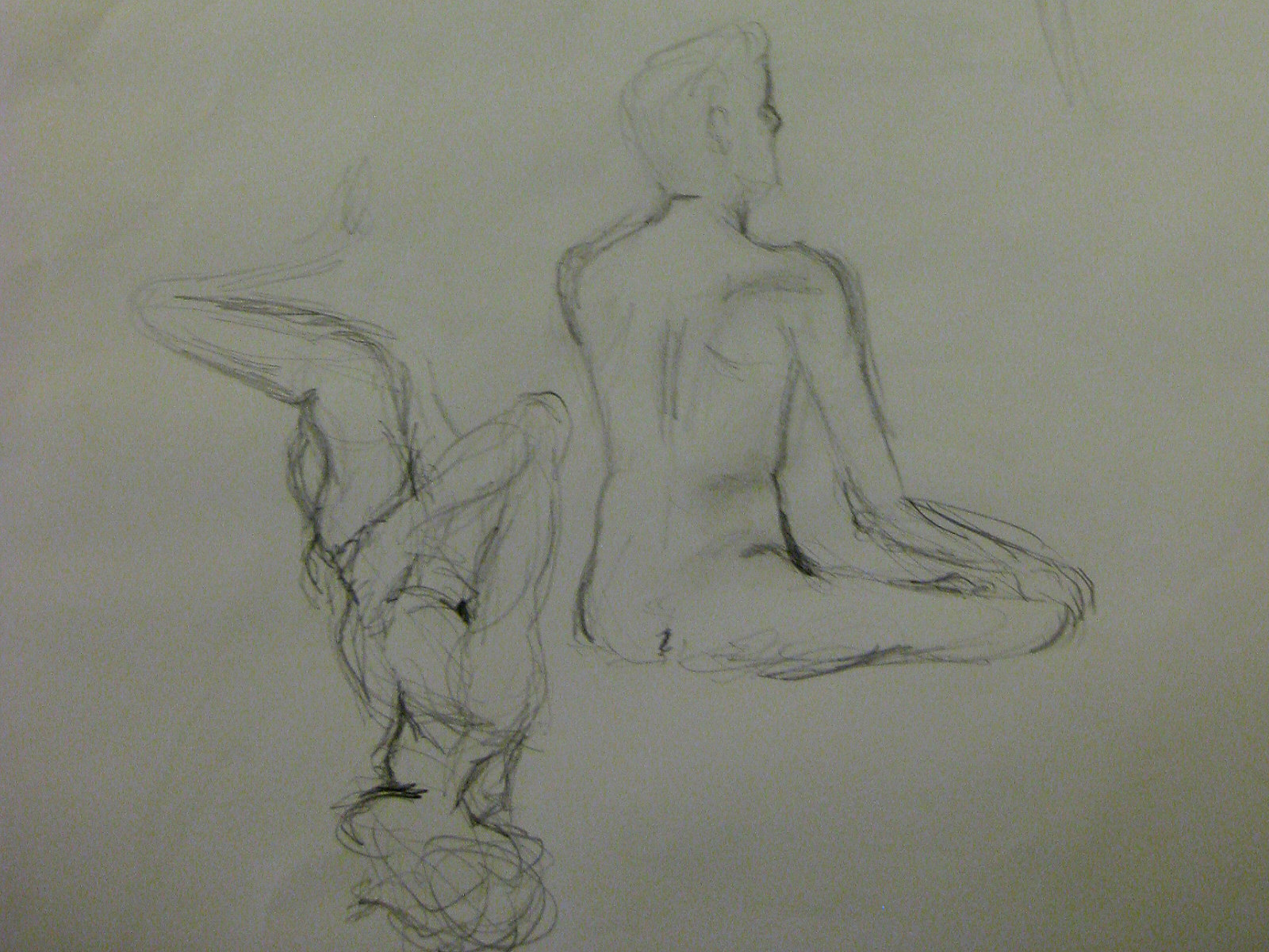 At the interval, aside from enjoying pizza, strawberries and Sauvignon Blanc, I had the pleasure of chatting to an artist whose main profession was physiotherapy. In addition to producing the excellent works below, she had come along to cultivate her analysis of the human body. I hoped I’d made a worthy case study, whilst privately wondering what physical defects in need of urgent repair she may have spotted.