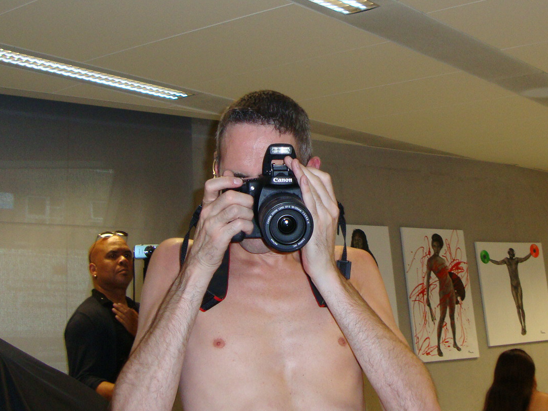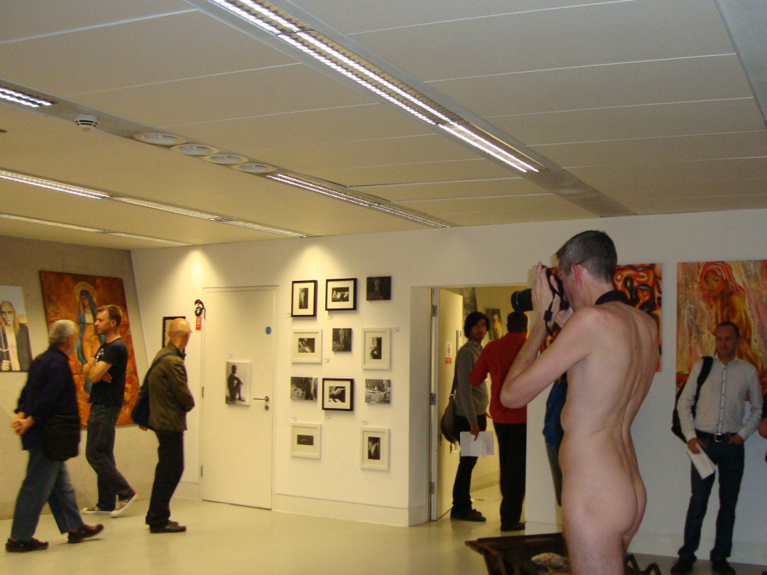 Tony was filming the piece and was also our signal man. At his first double-clap, the male artists stripped off while Alessandra and I raised our cameras to capture their transition and the audience reaction. The dozen people present played it very cool.