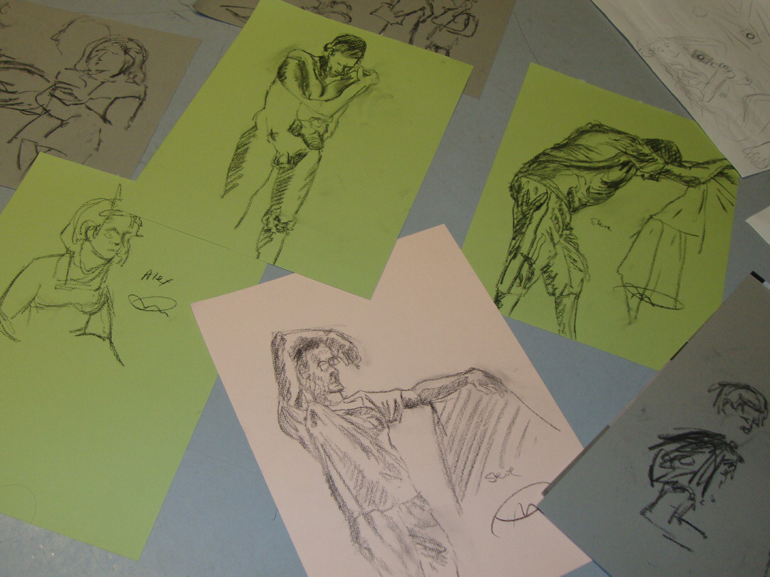 It was agreed that artists should sit boy-girl-boy-girl and that we would have a girl-boy pair of models. But who would be the models? Among the girls, the role defaulted to Alessandra, largely in her innocence at being last to arrive. She seemed nonplussed, if slightly bemused, and took to the role with great serenity.