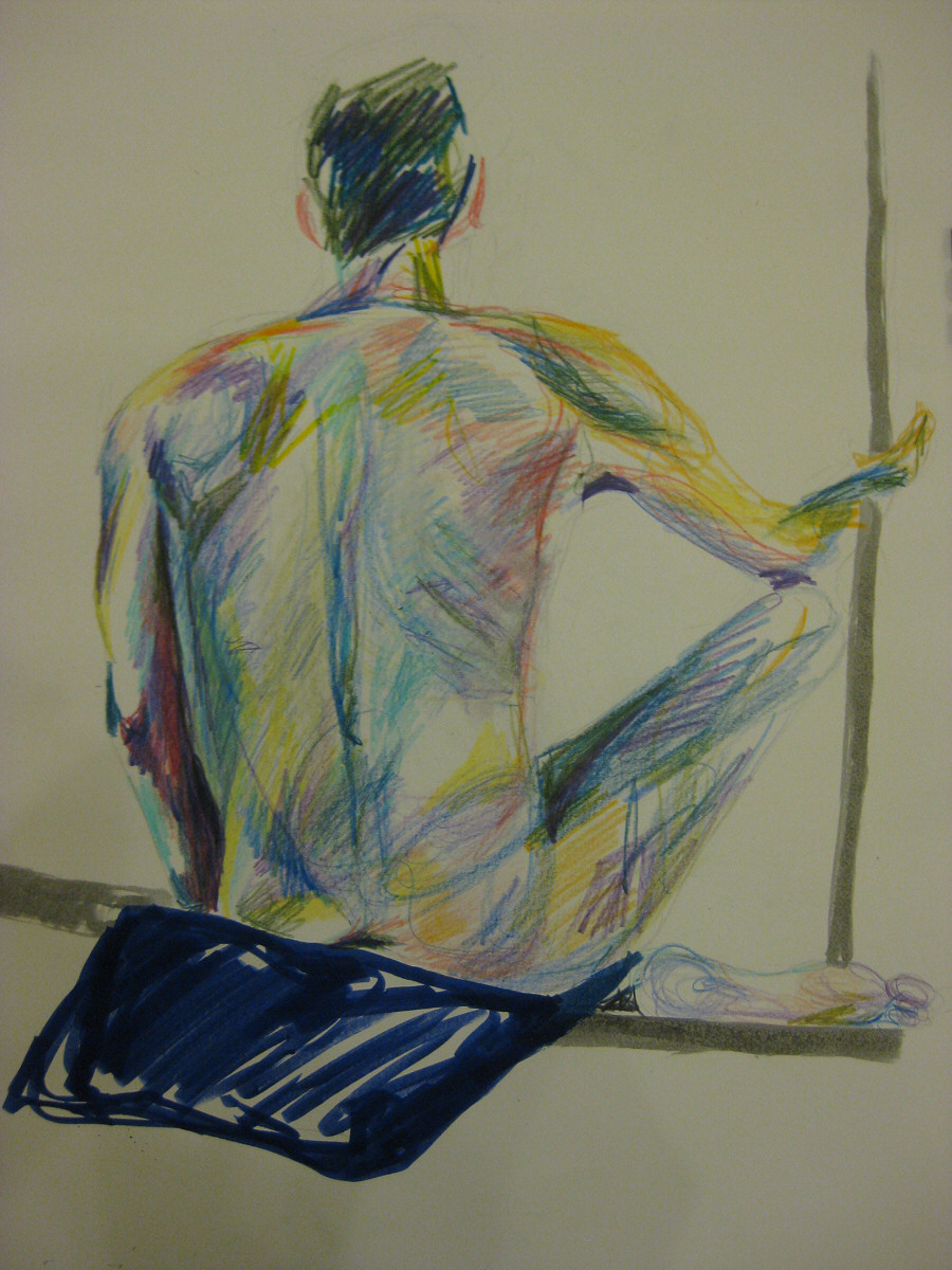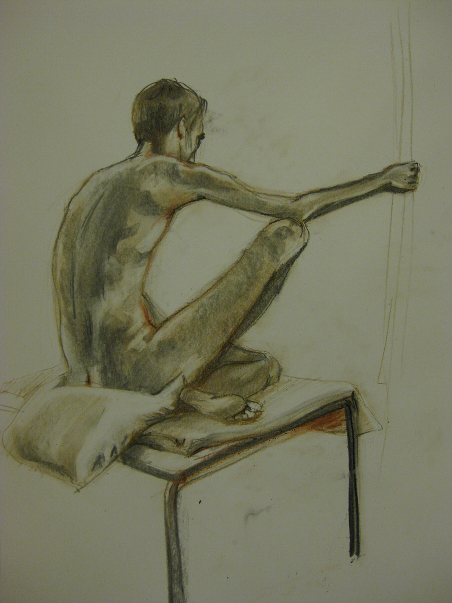 Another satisfying session life modelling at the Garrett Centre in Bethnal Green. Last time I modelled there it was one of the hottest days of the summer; the sweat trickled off me, even with the doors flung open throughout the evening.
