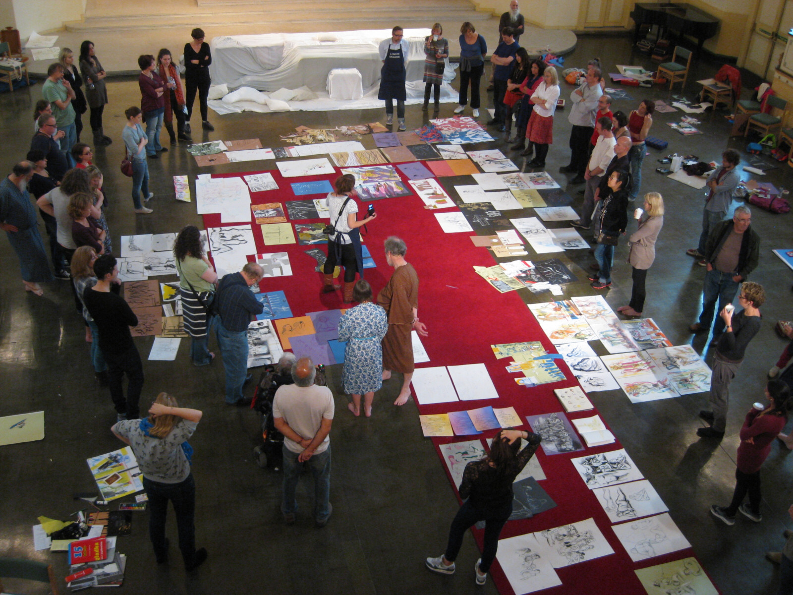This drawing theatre had a fine group, a brilliant concept and fantastic orchestration. The venue, the atmosphere, the schedule, the balance of planning and spontaneity, the good vibe from the artists, even the sunshine blazing through the windows, it all came together perfectly. Happy times. Full credit to the organisers – I hope we did them proud.
