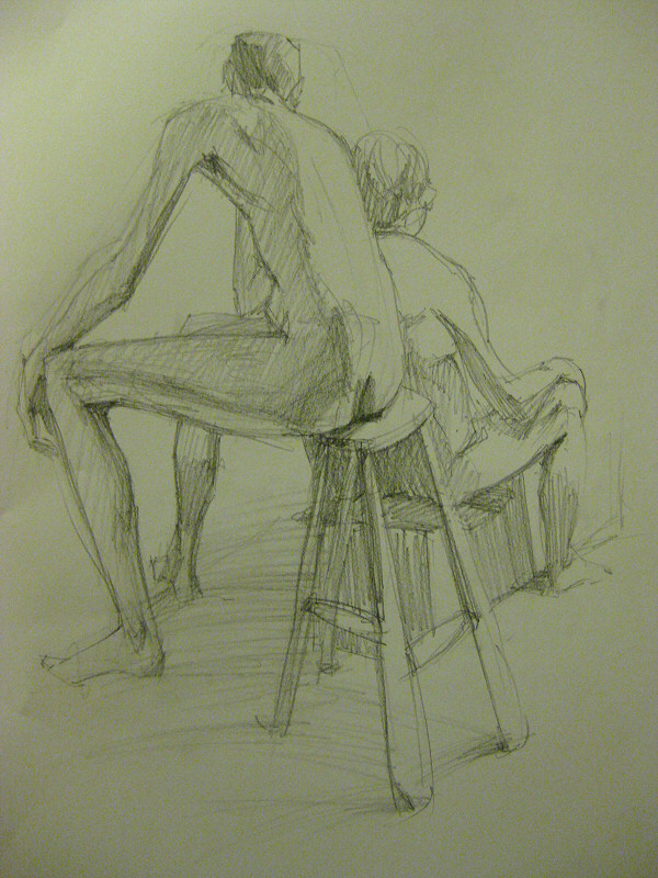 My first time modelling at Eastbourne House in Bethnal Green, on 1 July 2013, was duo work with another debutant at the venue: Maurice. We were introduced a mere 15 minutes before stripping off to pose in a hall packed with artists.