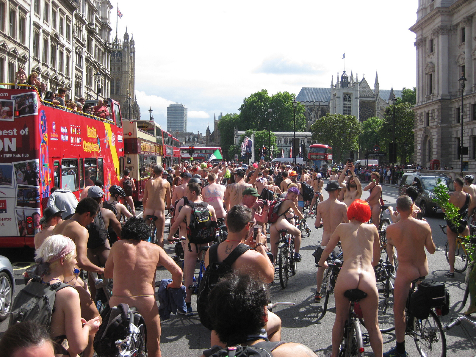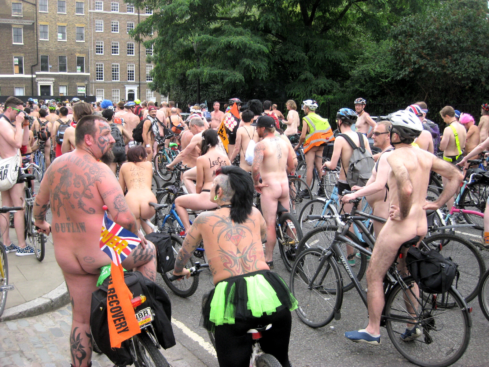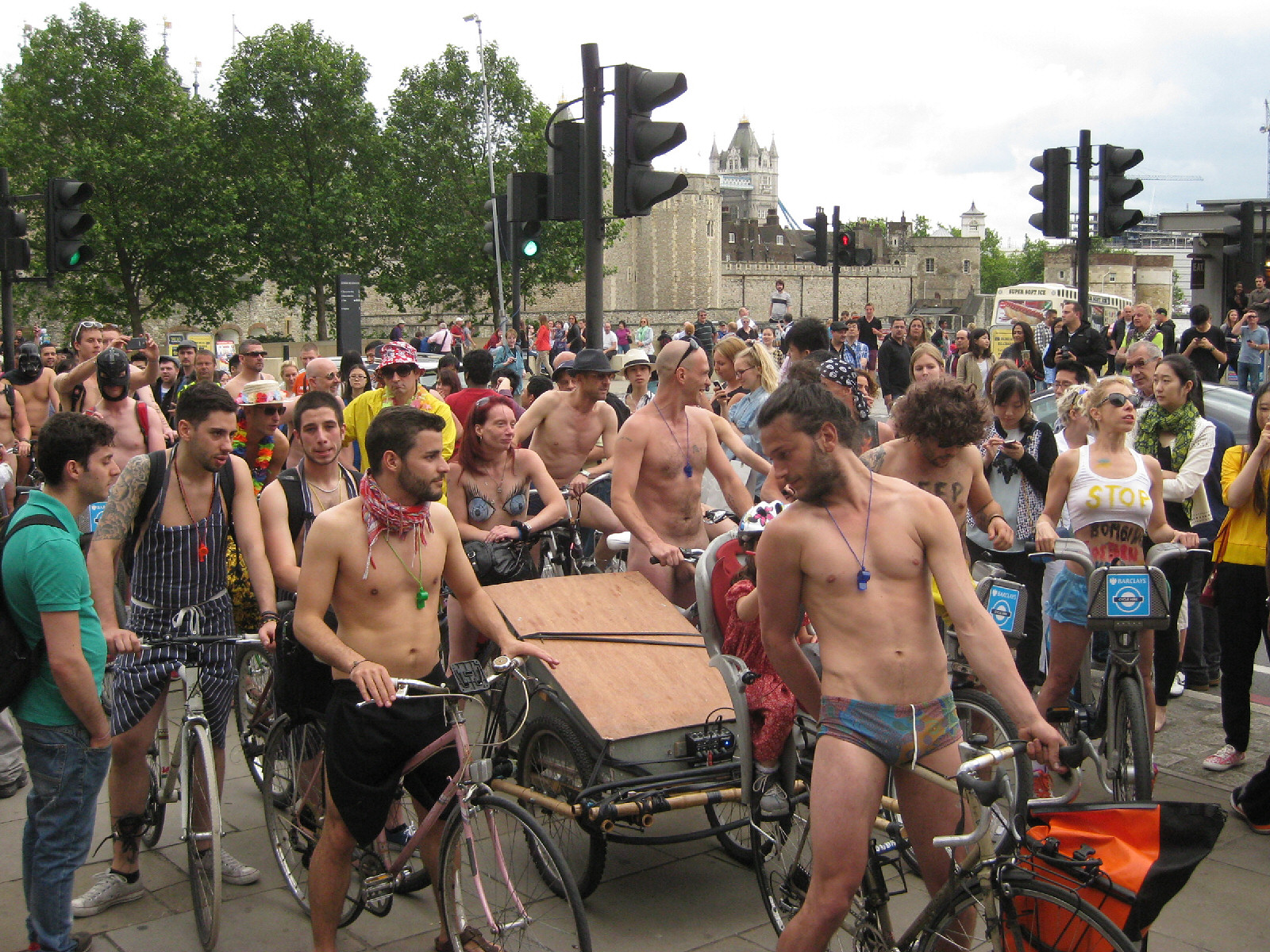 12 June 2004, 8pm, a band of 58 naked cyclists rode 2.5 miles around Hyde Park; it was the first World Naked Bike Ride (WNBR) protest in the UK capital. Since then it has become a major annual event on the streets of London. When it took place for the tenth time last year, participants had increased to thirteen hundred. This year’s tenth anniversary outing was primed to be the largest ever.