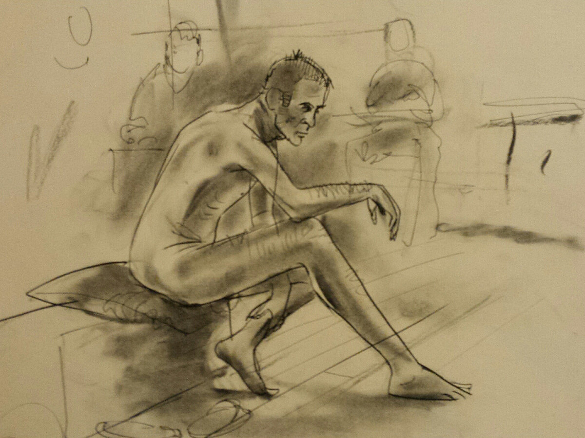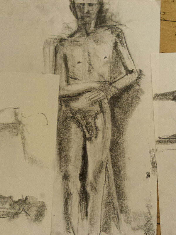My October return to Bethnal Green was for Adrian Dutton‘s Thursday class. It was to be a duo session with Boyko – an experienced life model, nonetheless undergoing the ritual of ‘auditioning’ to become a member of the Register of Artists’ Models (I’m RAM2437 myself.)