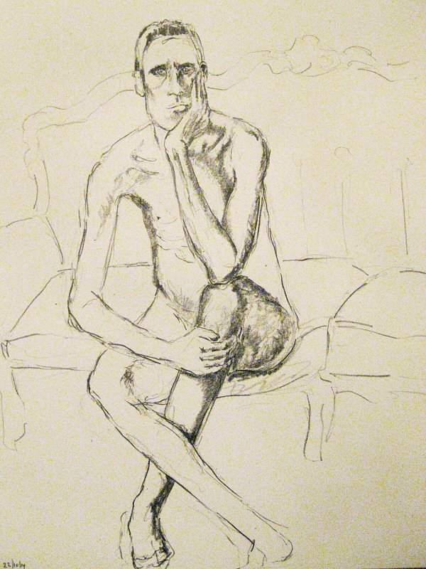 Again I met Tatiana in the upstairs function room, where we would be joined by about 10 artists. The poses would be 15 minutes standing, another 15 minutes standing, 30 minutes sitting on the floor – then a break – and finally 45 minutes seated on a couch.