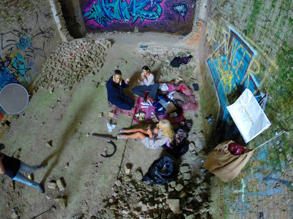 Time for one more pose before a break to enjoy Louise’s delicious home-made ginger cake. The three models were strewn naked over a high mound of rubble like so much discarded humanity. It was a magnificent concept and location, but we needed more bodies for maximum impact.