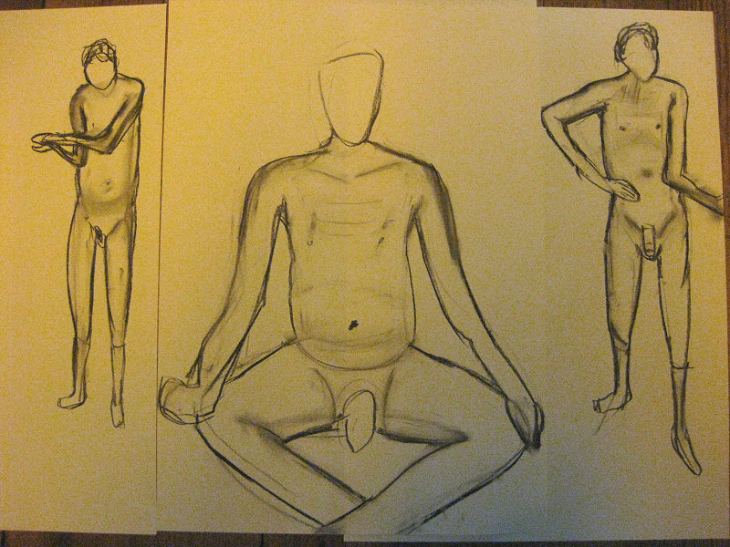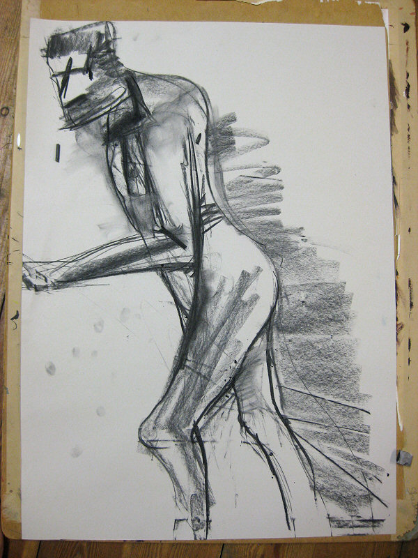 I’d picked up the booking only the night before – no problem as its one of the easiest London life drawing groups for me to reach. I arrived in good time, changed out of my clothes, and placed my folded white sheet on the floor. At 7pm I disrobed completely and began my first pose for five artists.