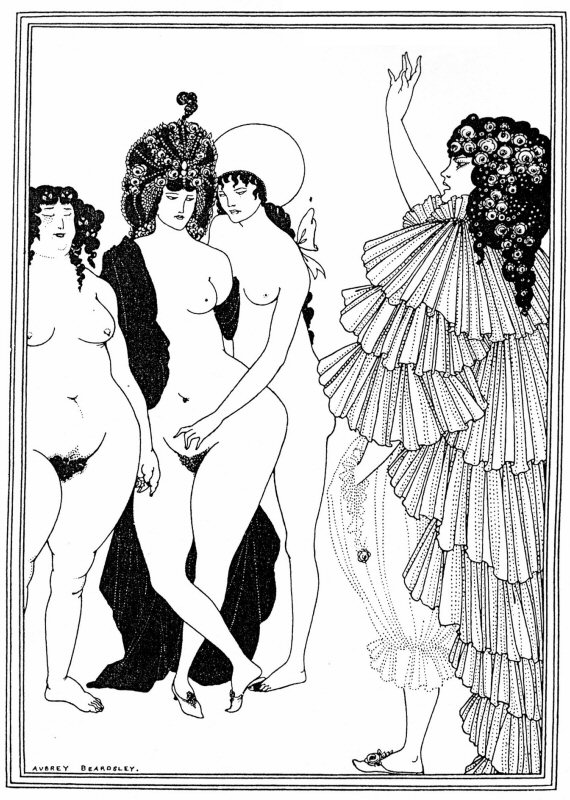 For those unfamiliar, Aubrey Beardsley (b. 21 August 1872, d. 16 March 1898) was: “an English illustrator and author. His drawings in black ink, influenced by the style of Japanese woodcuts, emphasised the grotesque, the decadent, and the erotic.”