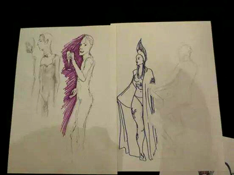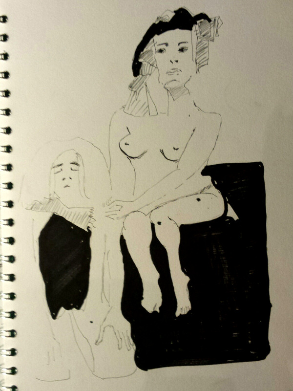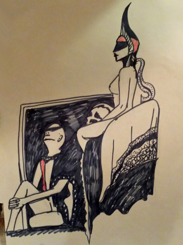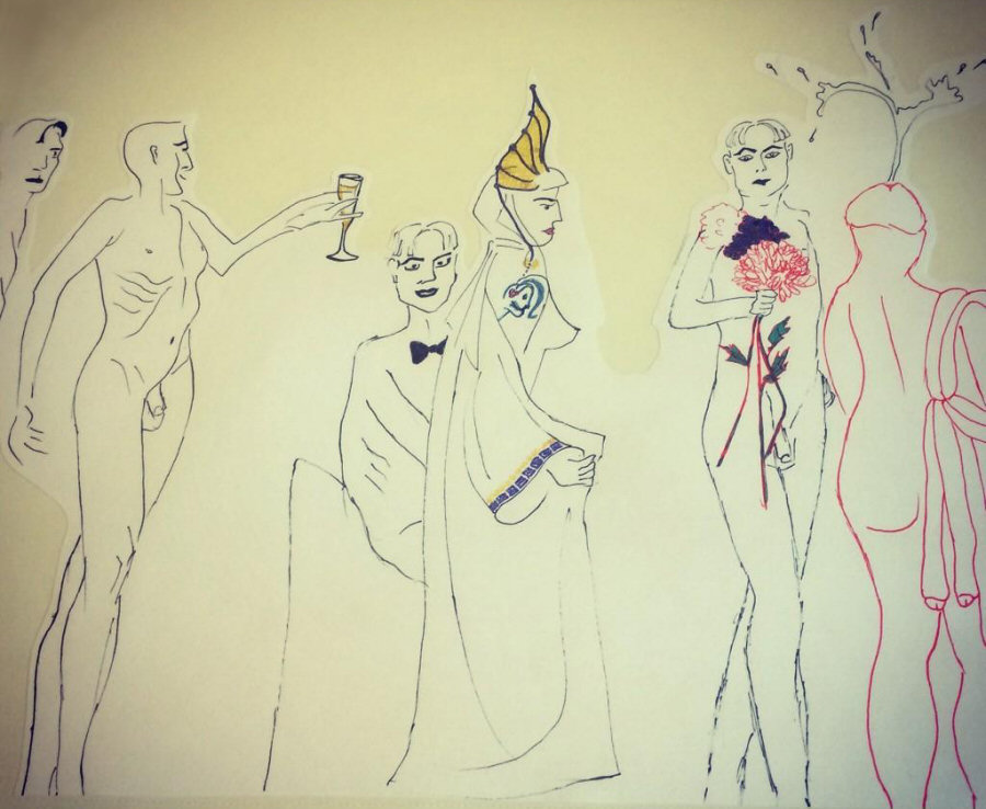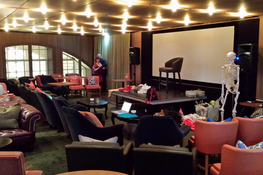 The event was a complete sell-out, which meant the bar was awash with artists by the time we were ready for our first poses. We would start with two short pieces in which I would be solo as Aubrey Beardsley: first posing with Art Macabre’s medical skeleton, Stanley, and then raising a cheerful glass of something fizzy. I stood with care as the top of my head brushed the ceiling.