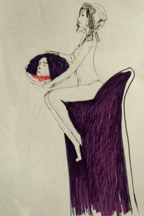 Next, she needed a head. I was that head. Our second plate had a hole in the middle, with a slit that enabled me to fix it round my neck. Bloody rags held it in place.