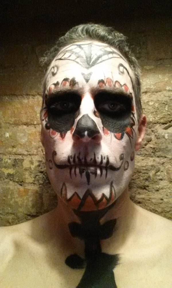 And so that very Saturday afternoon I got there nice and early, ready to be painted as an Art Macabre skeleton. Not for the first time, nor even the second time. It would, however, be a first face-painting commission for Caitlin: a natural artist with a talent in her hands and the macabre in her blood. Her work was fantastic.
