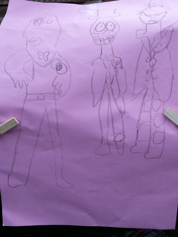 Down to work. Ed and I would pose for two, three or five minutes at a time, while Taz of Tottenham Arts was our carny, cheerfully tempting passers-by to pick up a pencil and get creative – a snip at £2 a go. It was all very laid-back and entertaining.