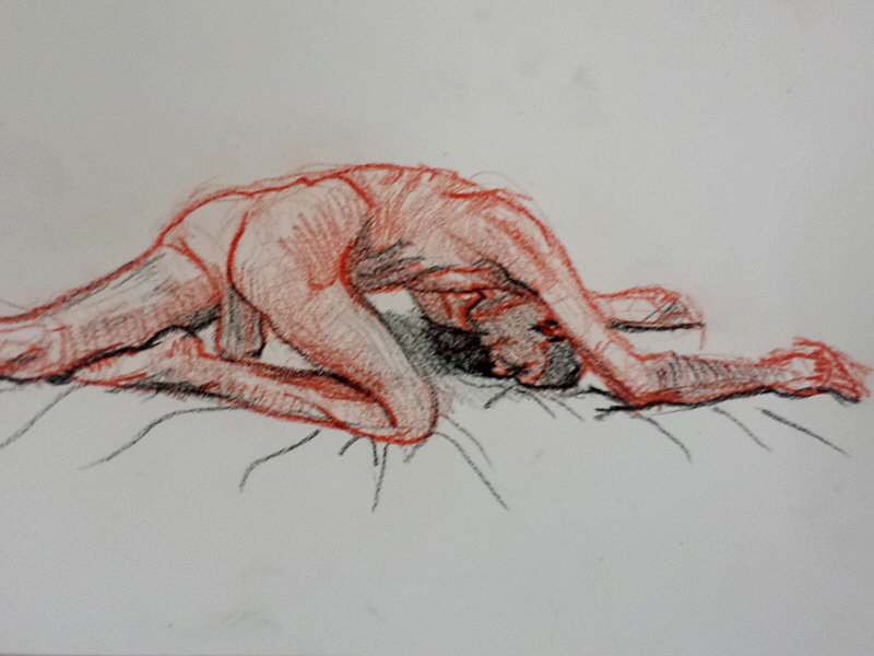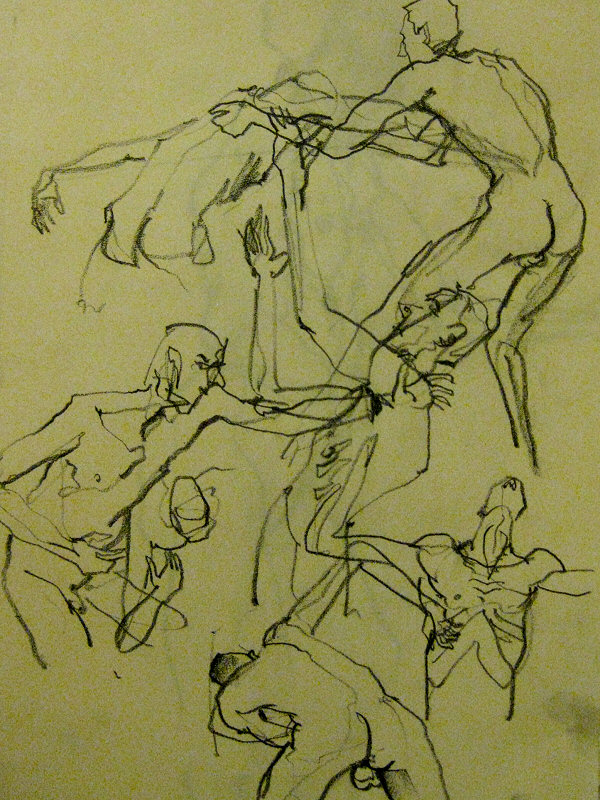 My November date was set to be the final one for them this year, so it was good to go out with a bit of a blast. No fewer than 21 poses were crammed into two hours and ten minutes of energetic modelling and drawing, with a break for hot food and drinks.