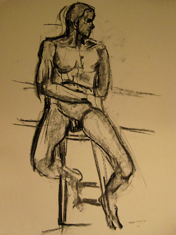 Artists were at liberty to luxuriate in as long a break as they fancied, but I was back in pose at 8:20pm so the keenest among them could recommence without undue delay. This was an open-ended seated pose that ultimately lasted 20 minutes.
