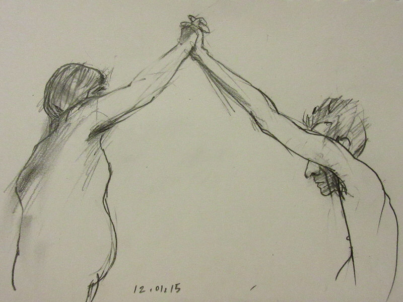 As usual we began with a 10-minute welcome pose; on this occasion a kind of static high-five. We then got dynamic – 1 minute, 30 seconds, 2 minutes, 3 minutes – after which our asynchronous posing began.