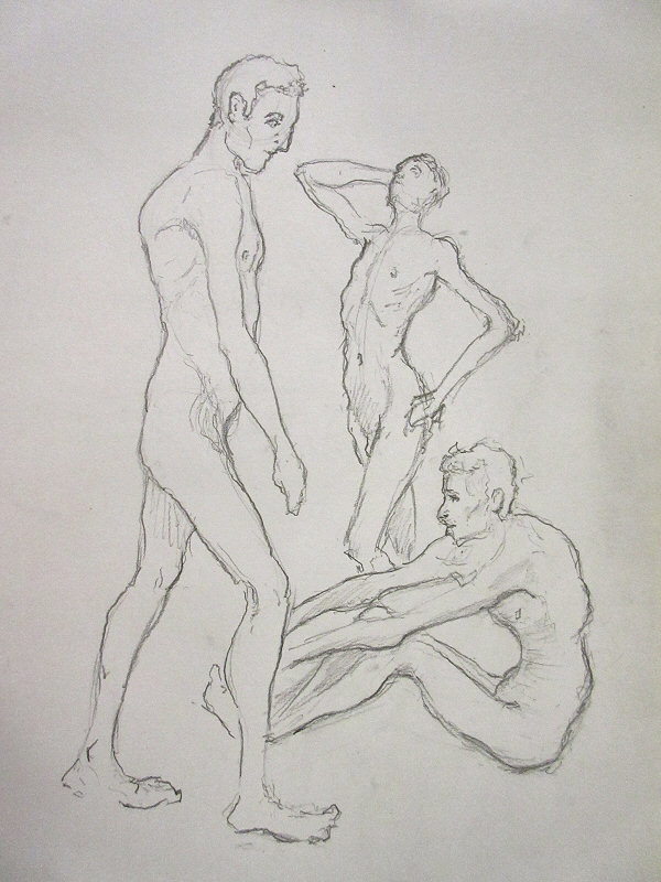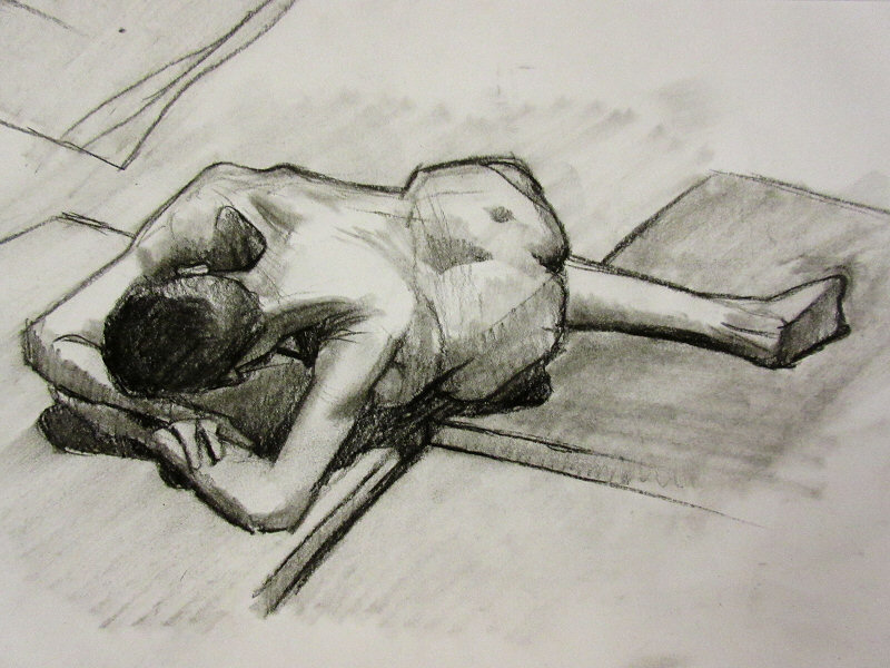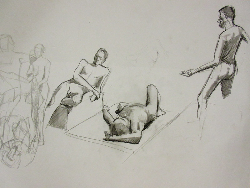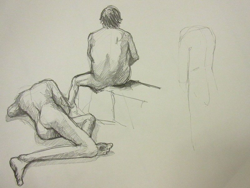 When everyone was back in their seats we had a quick flurry of dynamism – 1 minute, 30 seconds, 15 seconds – before lengthening in time. I lay down for 20 minutes while Maurice posed twice, and finally Maurice sat for 30 minutes while I posed three times.