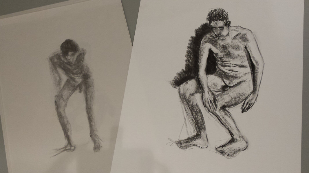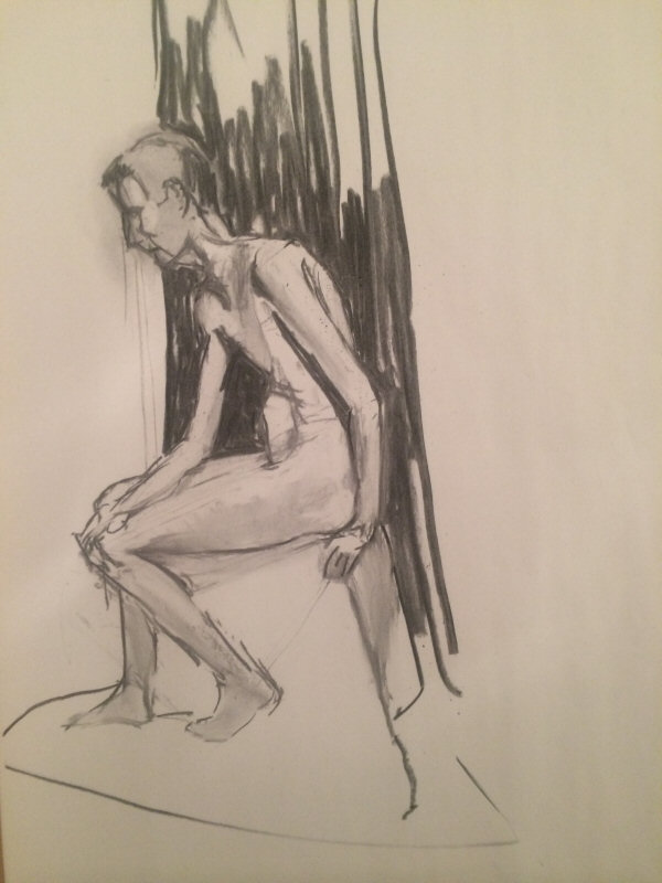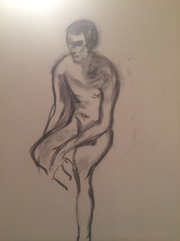 We raced through three poses of 30 seconds, two of a minute and three of 3 minutes. These were to hone the eye and line; the essential form was to be outlined within the first 10 seconds. After such intensity we slowed right down with a leisurely 20-minute seated pose that took us to a break.