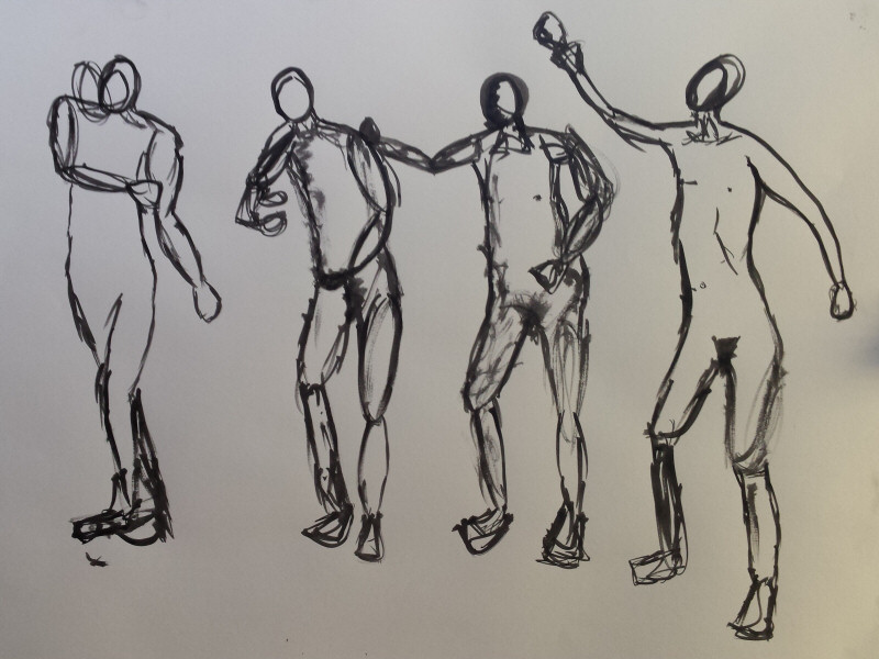 Of course it makes no difference to me whether I’m modelling for one or one hundred artists. I’m booked to do a job of work, come what may. On this occasion we started with gesture drawing. I would be moving continuously, smoothly but very, very slowly throughout the length of the pose.