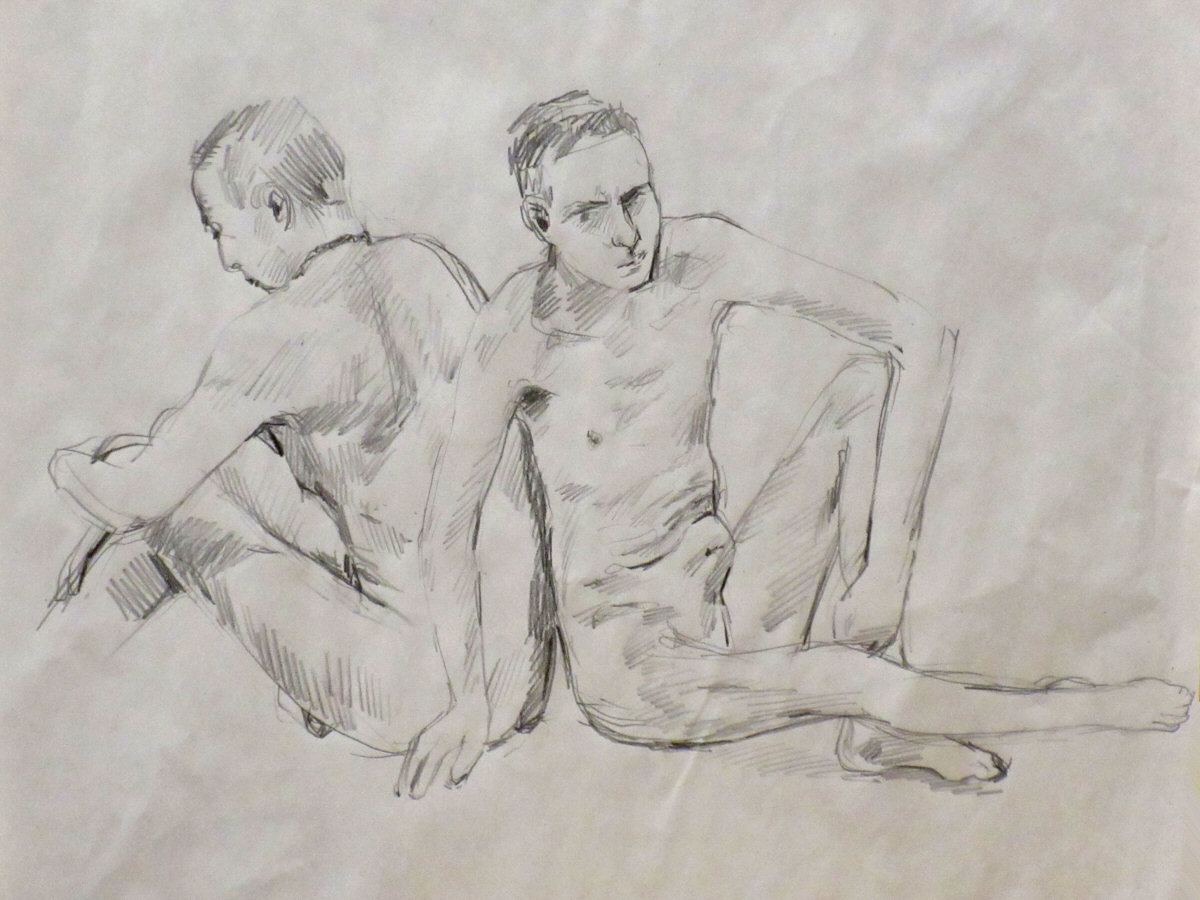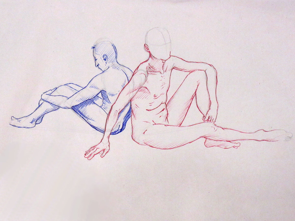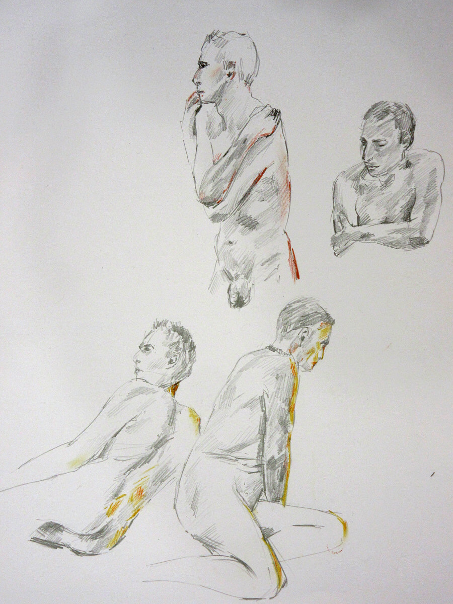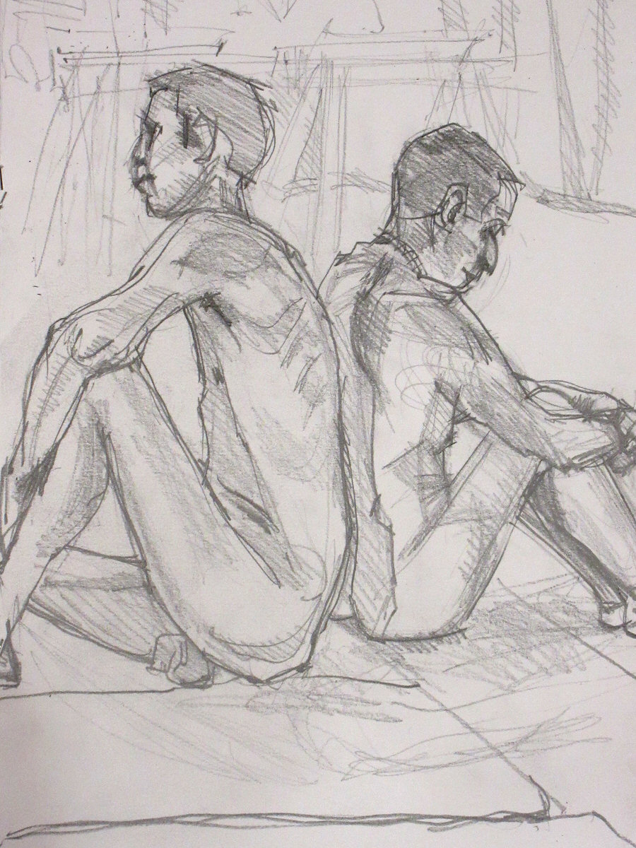 We resumed with a 15-minute pose, followed by another quick-fire round: 30 seconds, 45 seconds, 3 minutes. To close the night, Adrian suggested Ray pose for a half-hour while I do three sets of 10-minutes. Somewhere halfway through, this mutated into me posing twice for 15-minutes, while Ray did 20 minutes and 10 minutes. So be it.