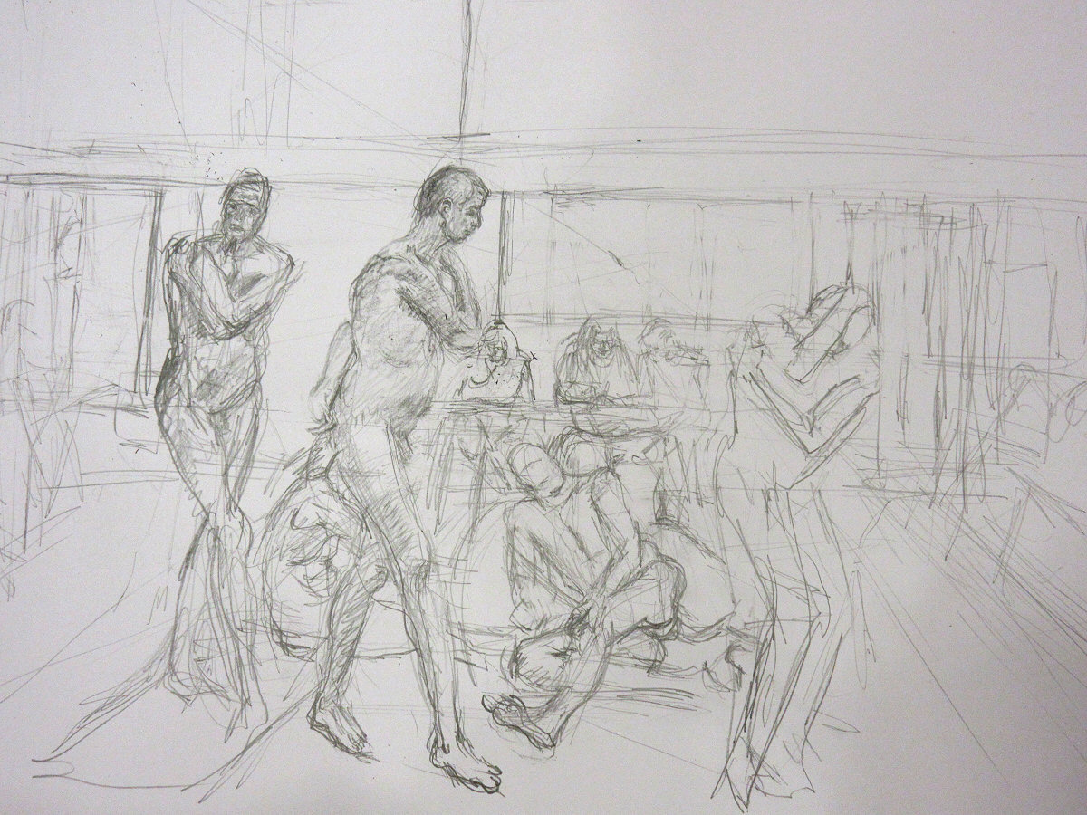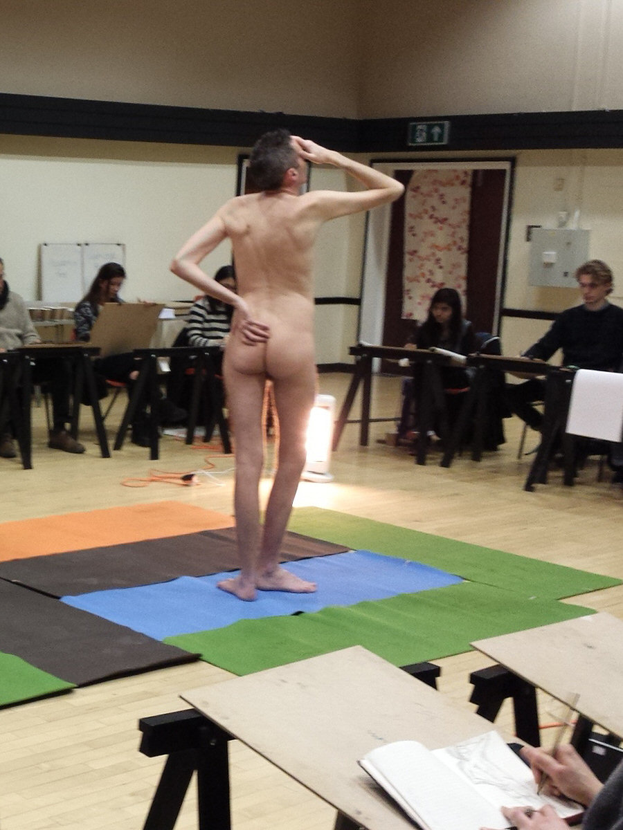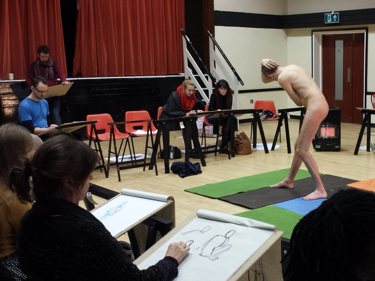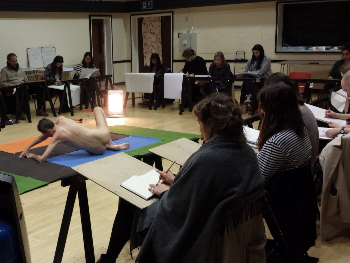 A familiar face in an unfamiliar place: I had arrived for my first time life modelling at the Rose Lipman Building in Islington and was just embarking on a circuit of its exterior to find the way in, when I spotted Adrian Dutton. As I was there for Adrian’s Tuesday night life drawing group, he was just the man to follow.