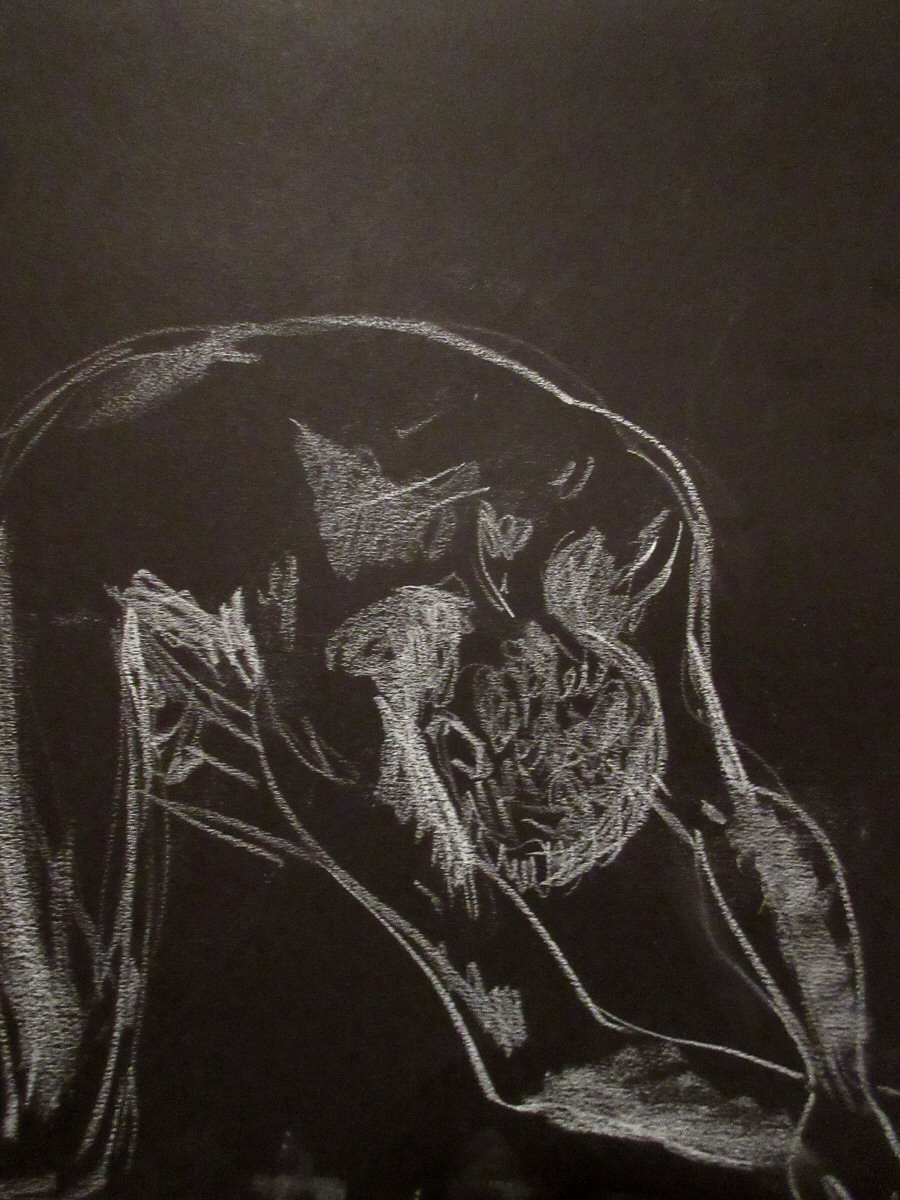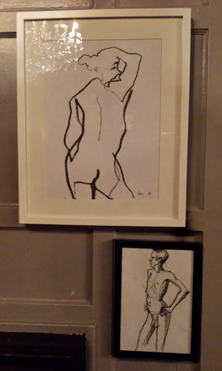 All around the walls were life drawings – beautiful life drawings. I scrutinised each one whilst I pondered my next move, even recognising a few of the models as friends. The simple outline curve of a woman’s back was bold and unmissable beside the fireplace. Even more striking to me, however, was the smaller drawing just beneath it.