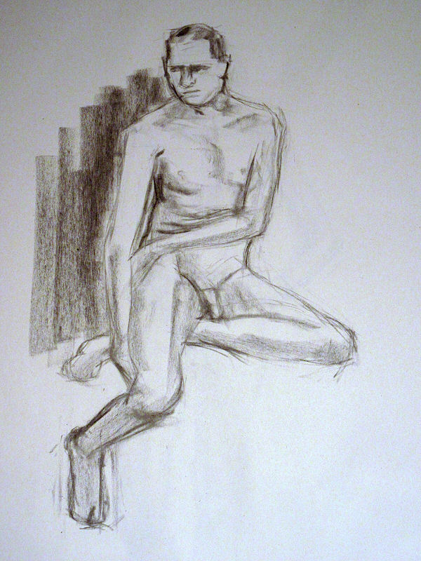 Although the exercise went very well I think it may have been with some relief that the artists continued thereafter with medium-length poses and an easel all to themselves. 15 minutes standing and 10 minutes seated took us up to our break.