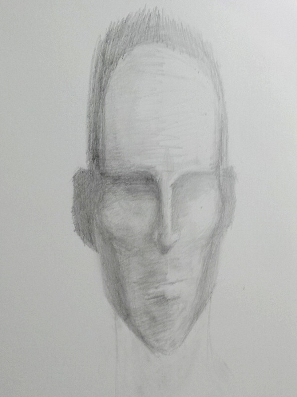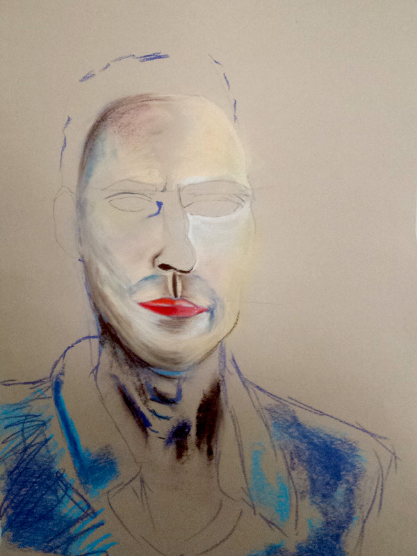 Afterwards we switched to using colour. This took us to our break. The students were capturing my likeness, but also weaving in their own idiosyncratic stylings. I liked the blending of the skin tones in the preparation below.