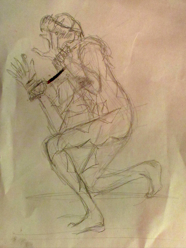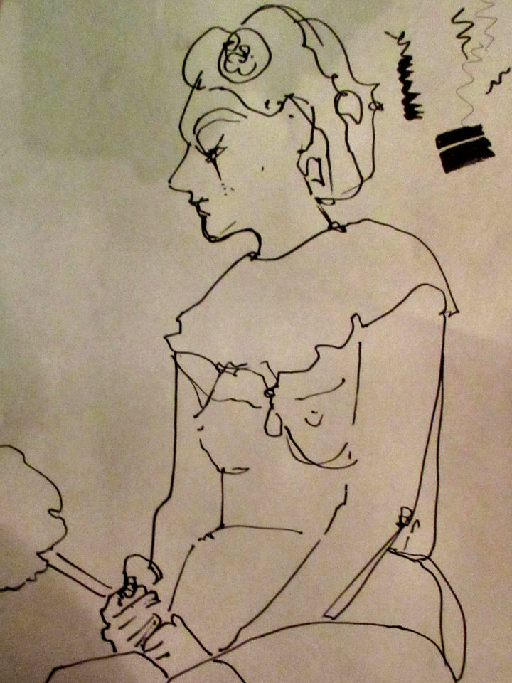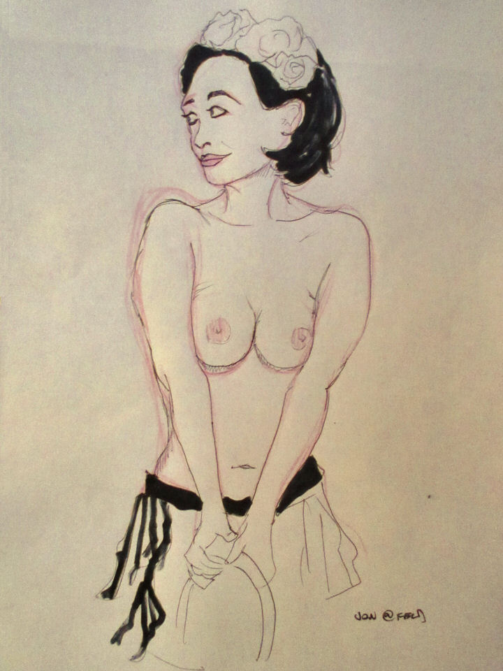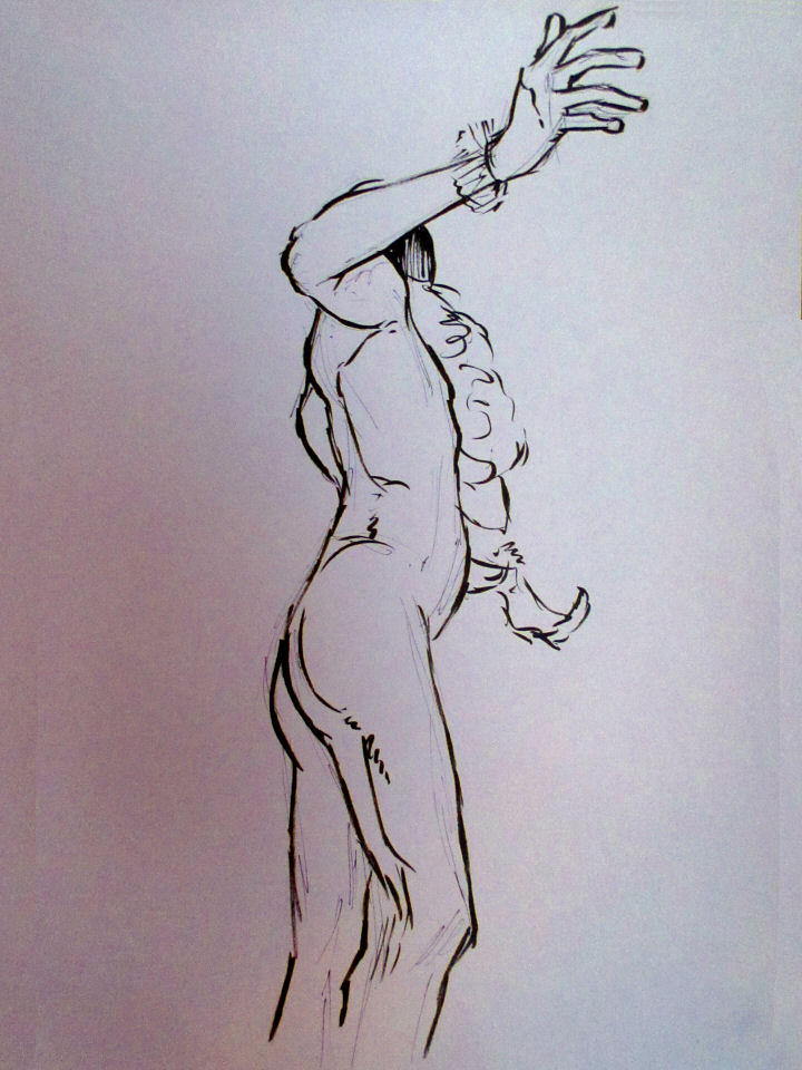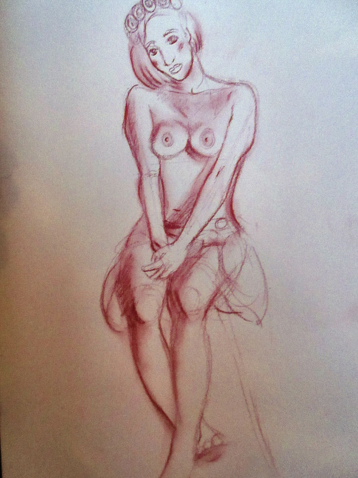 Mary Beth’s solo pose was the day’s big crowd-pleaser. Fast-forward to when we had finished and Nikki invited everyone to lay out their favourite drawings for all to admire, there were as many of this pose as there were of all our other poses put together – a reflection perhaps of its inspirational pathos, beauty and elegant simplicity