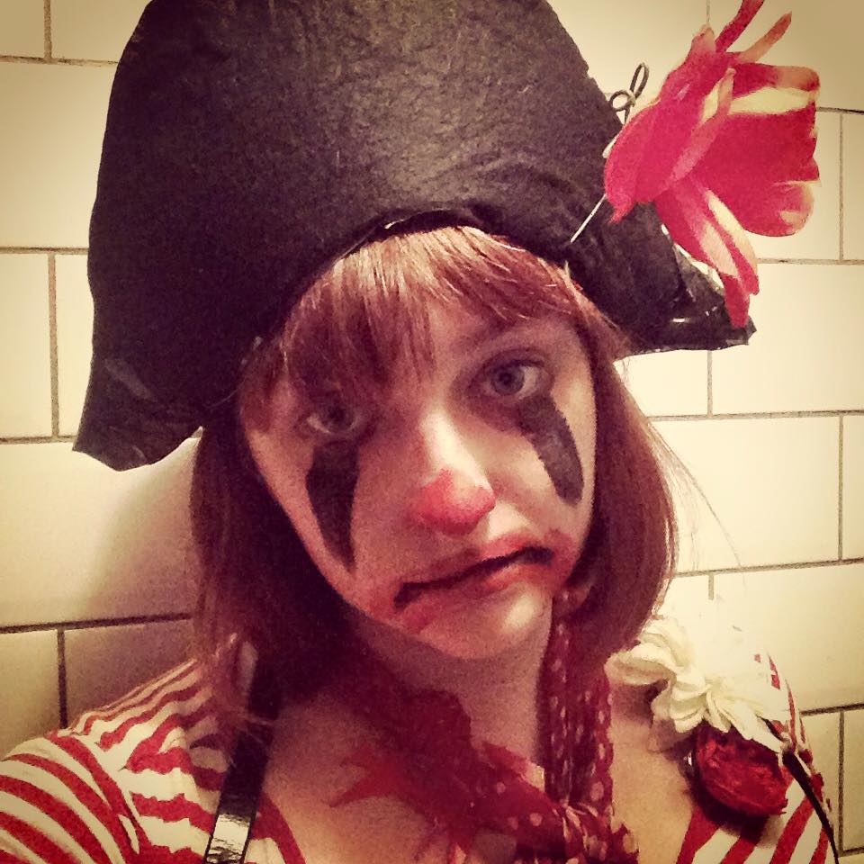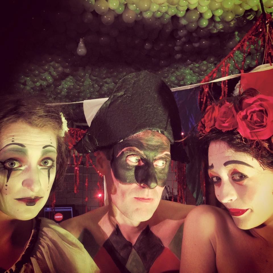 Indeed, I was to be one of four clowns. Mary Beth Morossa would play the role of Pierrot, FiFi Croissant would be Colombina, and I would be Harlequin – all famed characters derived from the Commedia dell’arte. Our fourth clown was la magnifica direttore di arte macabra, Nikki aka Raven Rouge.