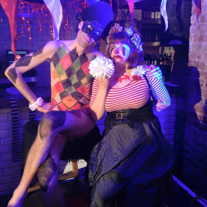 My first time life modelling for Art Macabre was as Egon the skeleton clown in their 2013 Circus of Skeletons. That day also happened to be my birthday, and in many ways each Art Macabre booking since then has felt like a cause for celebration. Last Saturday with them at The Book Club in Shoreditch I was a clown re-born.