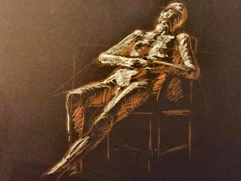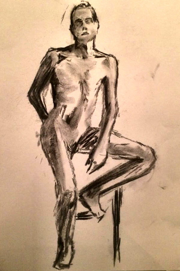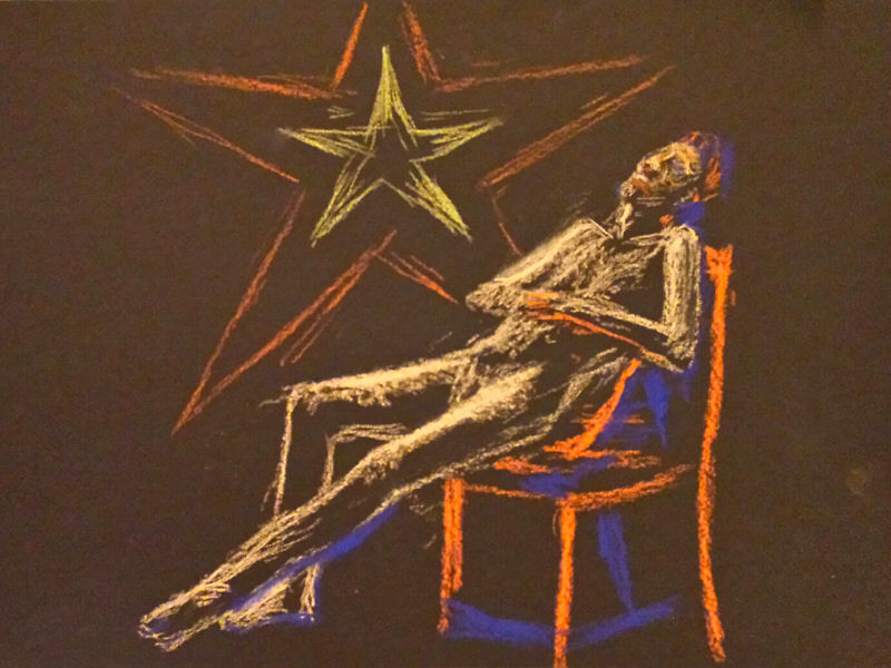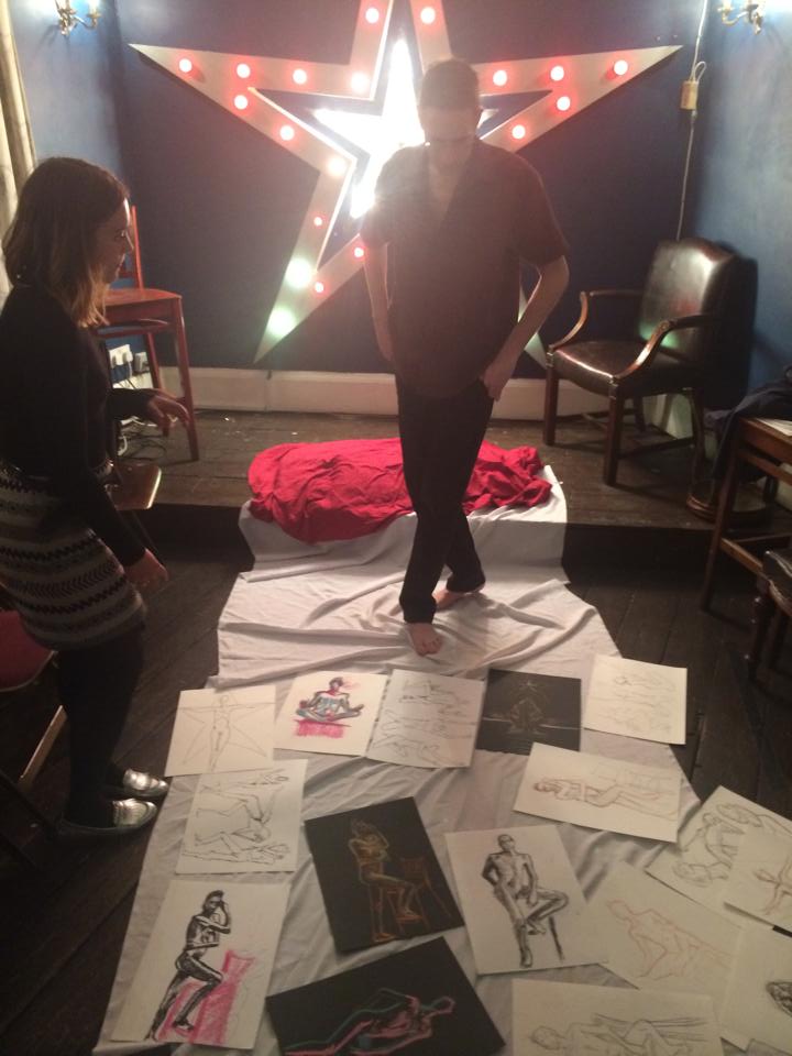 I was there myself Thursday last week, not as a patron but as the nude human body. Upon arriving I was greeted by Catherine Hall. On Mondays she provides superb life drawing tuition at the A-side B-side Gallery in Hackney Downs Studios. ‘Drawing the Star‘, however, is purely for relaxation and enjoyment.