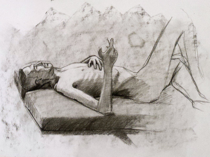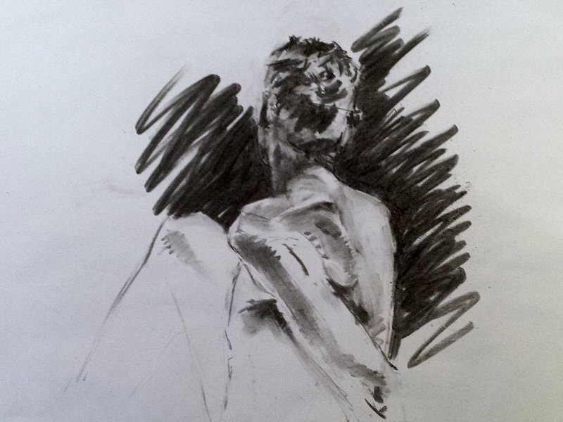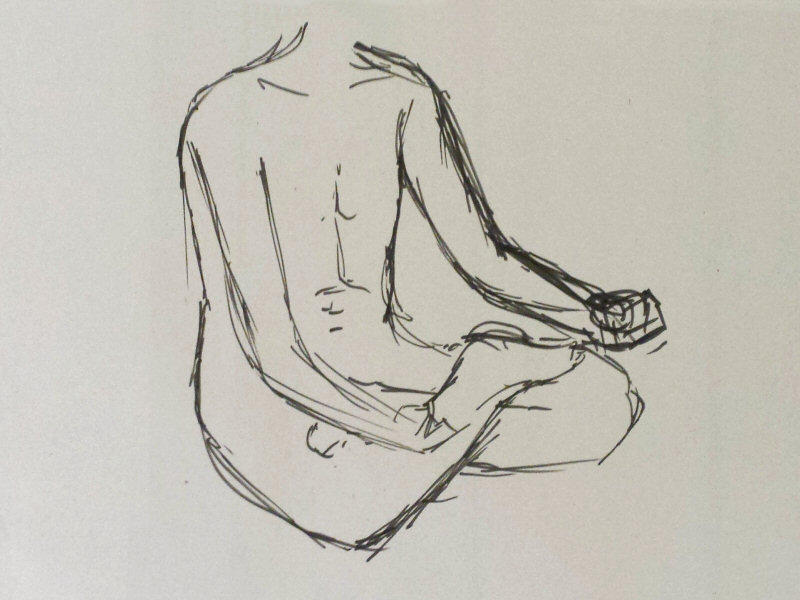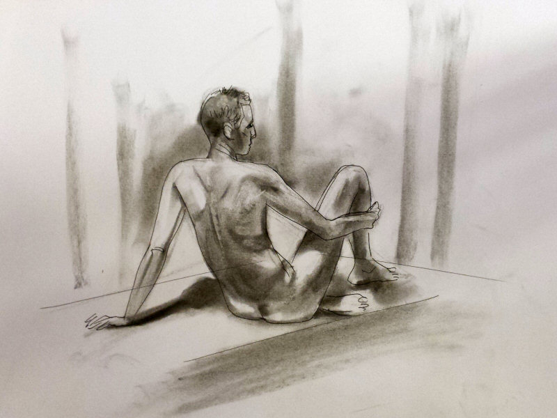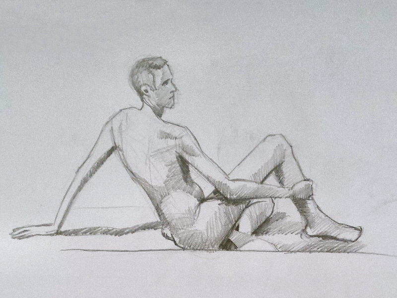 The break could last for anything up to half an hour but I returned early in a 10-minute pose for those impatient to resume drawing. When everyone was back in their chairs, we finished with two poses of 30-minutes each. It was a mild evening and only for the last pose did I feel the need to accept the offer of a heater.