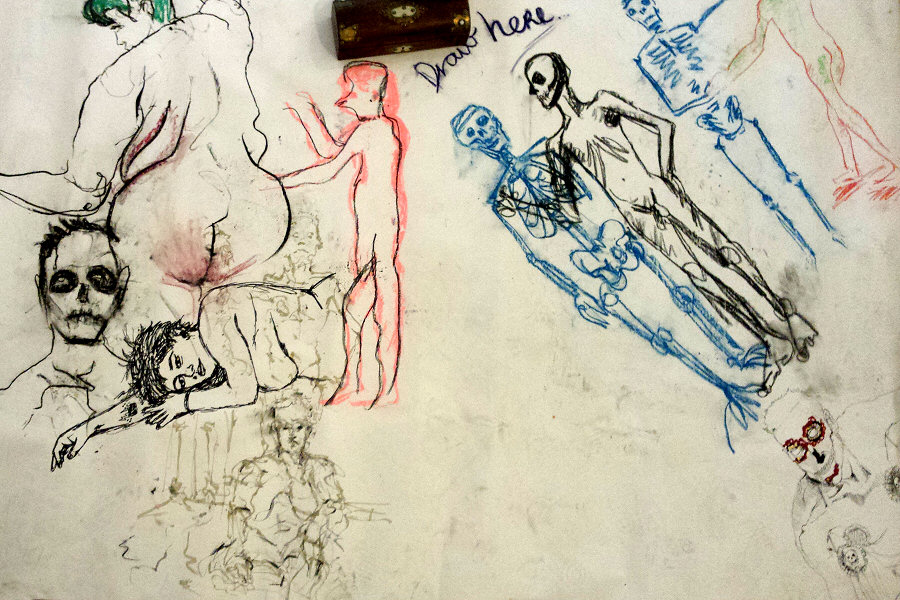 Since 2010, Art Macabre has run ‘death drawing’ salons: theatrical life drawing events that invite participants to explore themes of death and dying through drawing and art. Art Macabre’s Director, Nikki Shaill […] wanted to curate an exhibition as part of Dying Matters Awareness Week to stimulate conversations about death and dying, inspired by the Dying Matters philosophy that the more we talk about death together, the more we dare to look it in the face and plan for it, the better our lives will be until the time will come for us and our friends, families and communities.