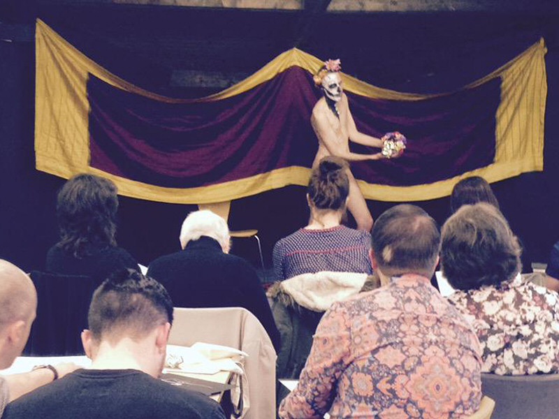 It almost didn’t happen. My first event outside London with Art Macabre looked sure to be scuppered by the immeasurably greater tragedy of somebody dying beneath a train near the very station to which we were headed. The previous evening I’d been at the Art Macabre ‘Dying Art’ exhibition, which carried the message: Dying Matters. Indeed it does.
