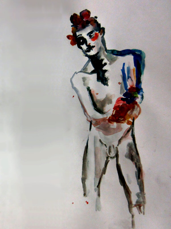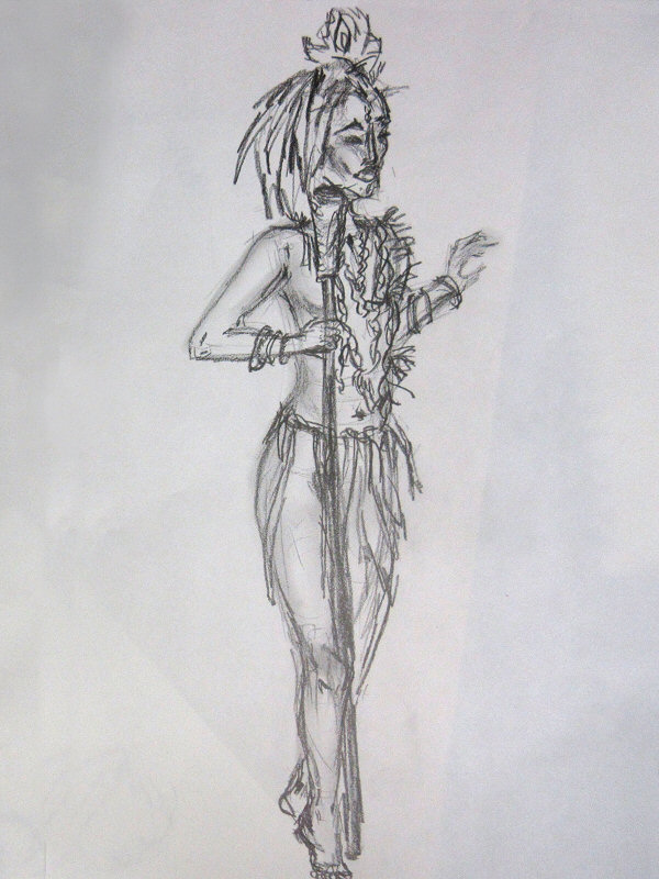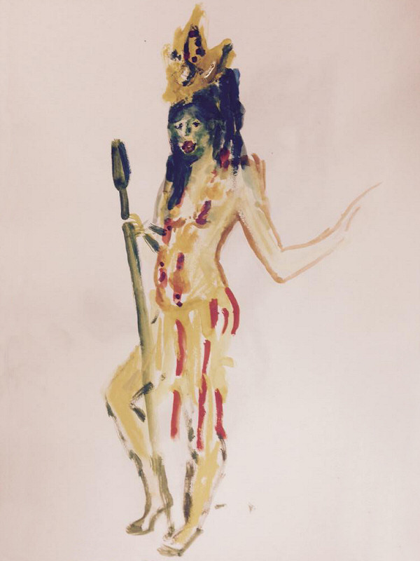 When I rejoined Maya behind the scenes she was all but naked, midway through her metamorphosis into the goddess Kali. Shortly before, a cleaner had wandered in and been startled out of his wits. My own transition simply entailed swapping the Mexican garland of flowers in my hair for a black crow’s wing fastened to the side of my head. I was now a male Hel.