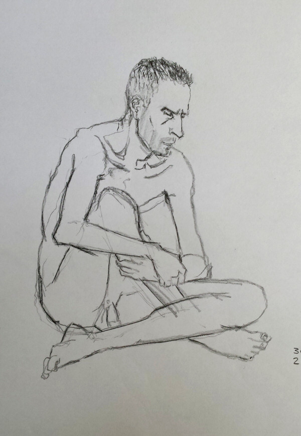 I provided four poses for the artists of Wanstead: 5 minutes standing, 10 minutes also standing, 45 minutes seated on a chair, and – after a long break for tea and chocolate digestives – 25-30 minutes seated on the floor.