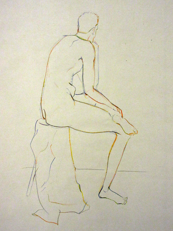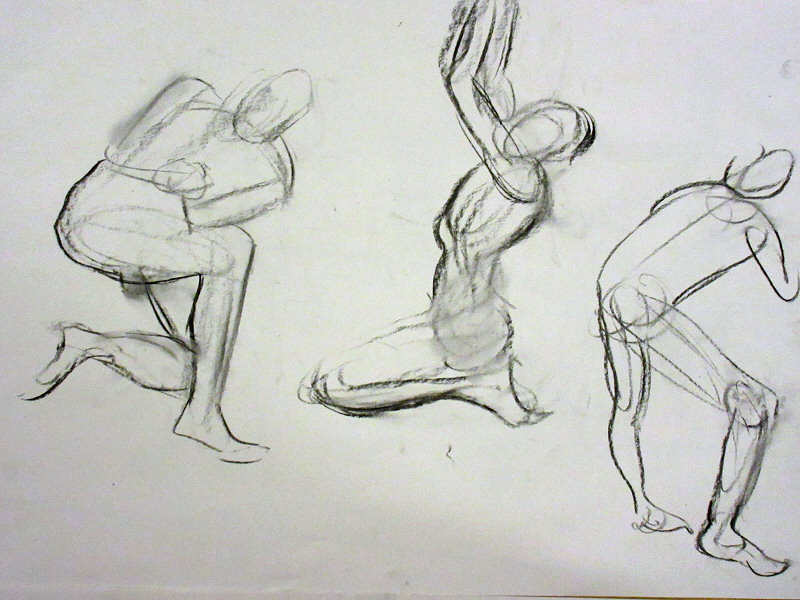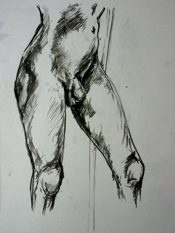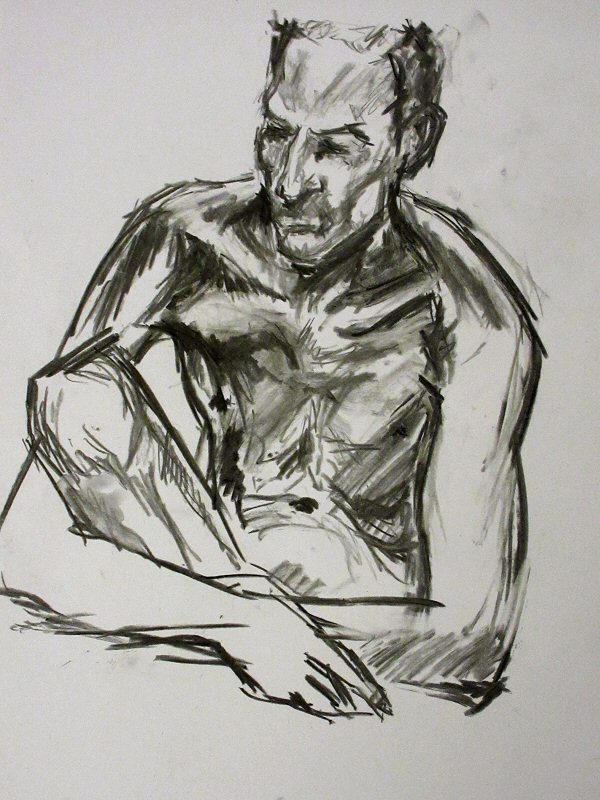 During the first hour I posed for 10 minutes, 1 minute, 2 minutes, 30 seconds, 3, 5, 10 and 25 minutes. After breaking for hot pasta, biscuits and tea, I followed with poses of 10 minutes, 3 minutes, 2 minutes, 1 minute, 30 seconds, 15 minutes that became 23, and 17 minutes to end. It was a good work-out; exhausting but never uncomfortable.