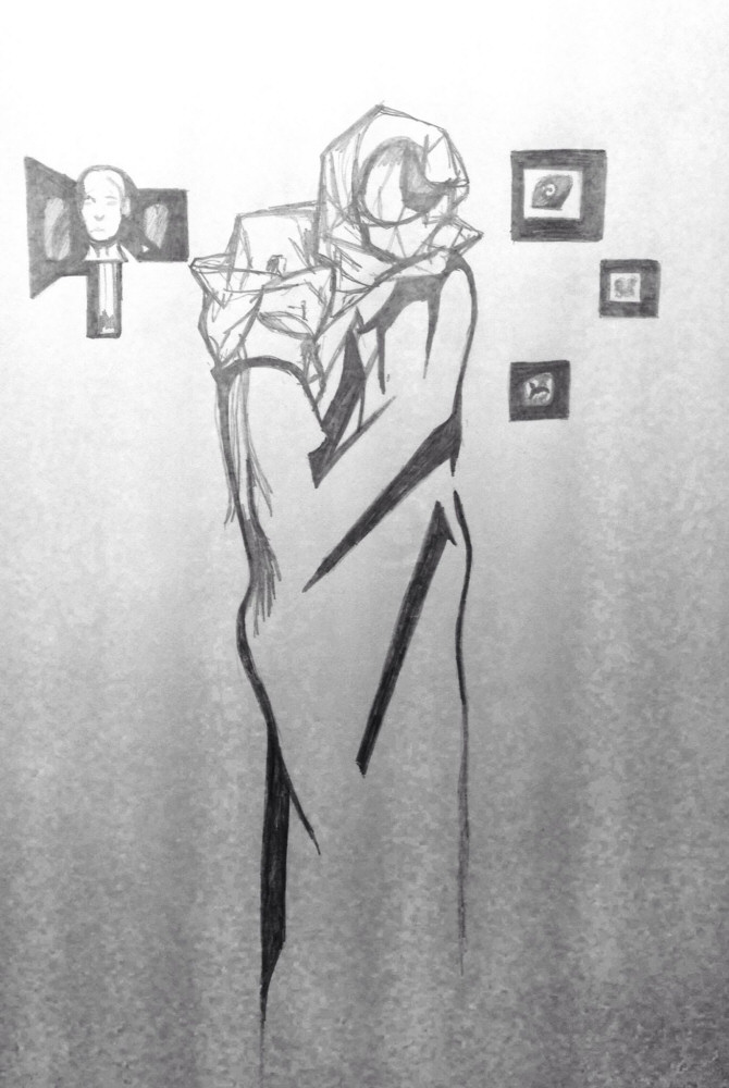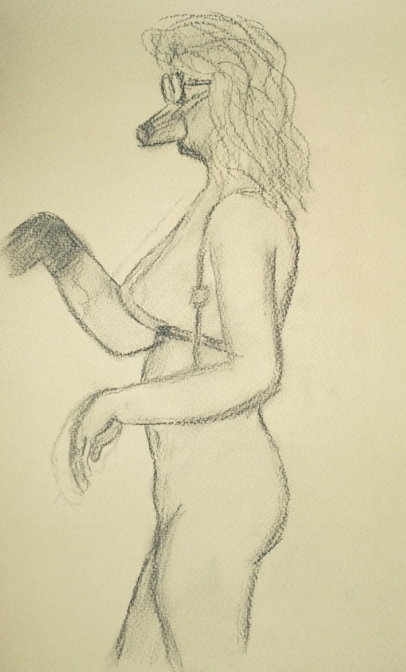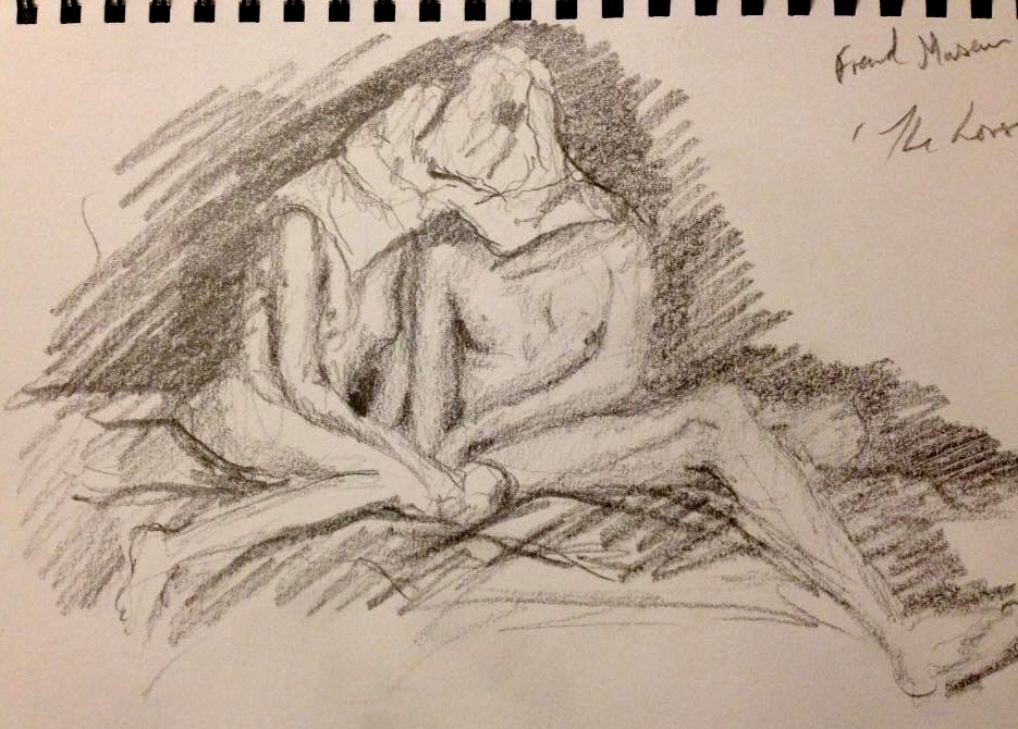“I’ll be changing pose in one minute.” When I had silently counted 60 seconds, Nikki appeared and took me aside to prepare for something different. My final poses would be duo tableaux with Bella, taking inspiration from Magritte’s The Lovers. Nikki had asked tentatively beforehand if anyone would mind and, after a little hesitation, Bella spiritedly accepted having a “new best friend” for the duration.