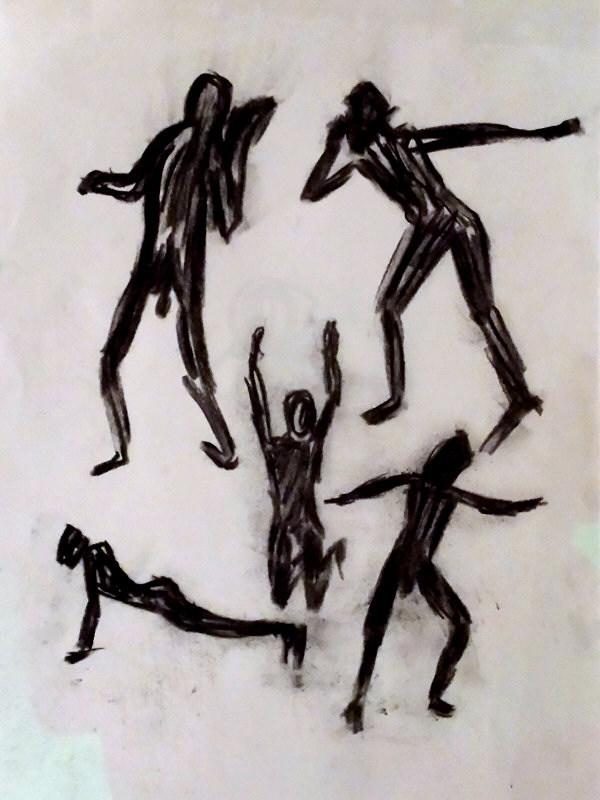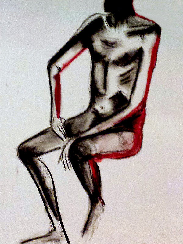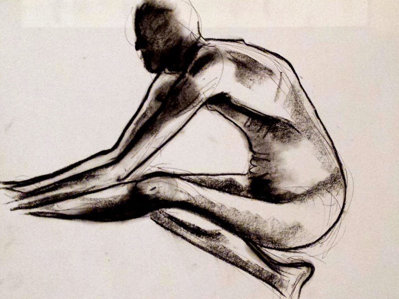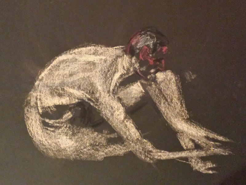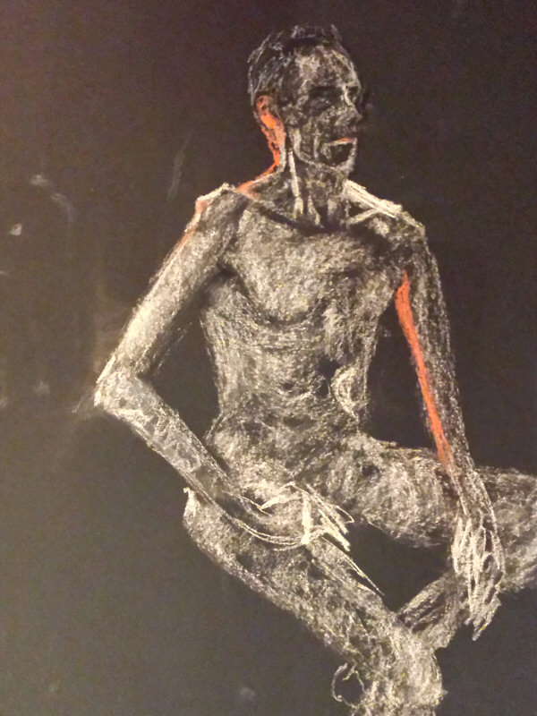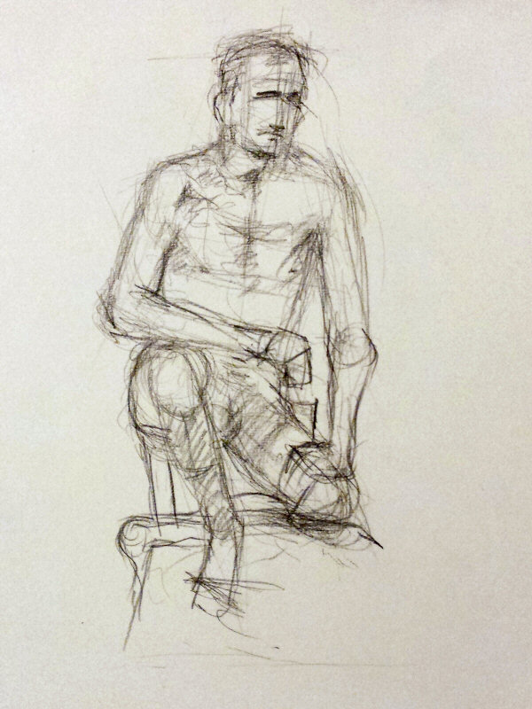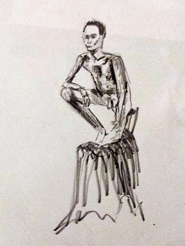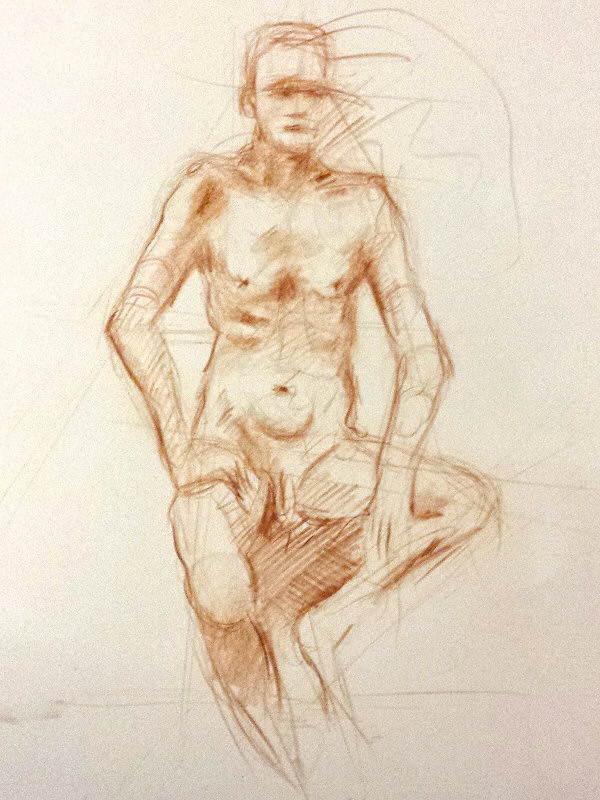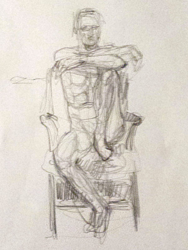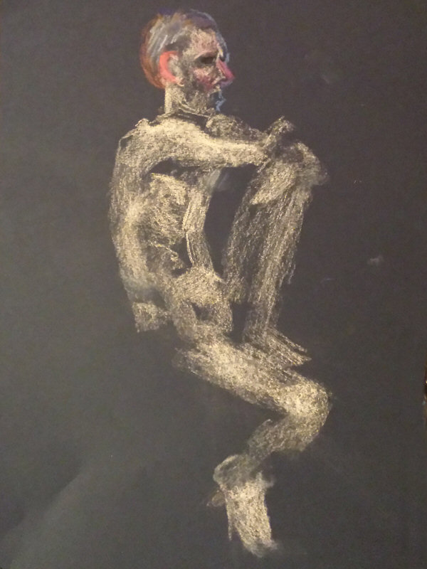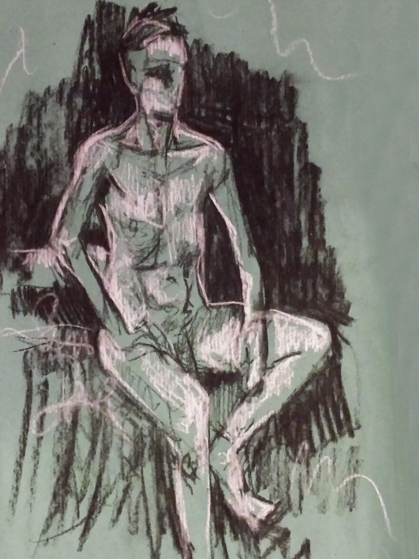This was my first pose after the break during what was my first visit to The Star by Hackney Downs since April. I closed the session with a rather more comfortable, if admittedly less interesting, seated pose on the edge of a couch. 15-20 minutes later we were done and the evening’s works could be admired in a vast spread occupying the whole of our upstairs floor.