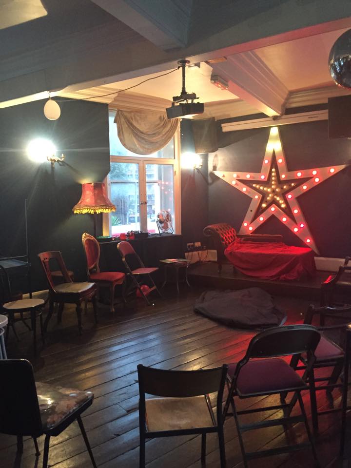 When I’d arrived at the pub, the group’s co-coordinators – Catherine Hall and Carla Nizzola – had almost finished setting up. All new boxes of materials were ready and waiting for artists to help themselves. After a brief skirmish with the sound system, a quick cough and a drag, and the procurement of an art-enhancing bottle of red, they were ready to go.