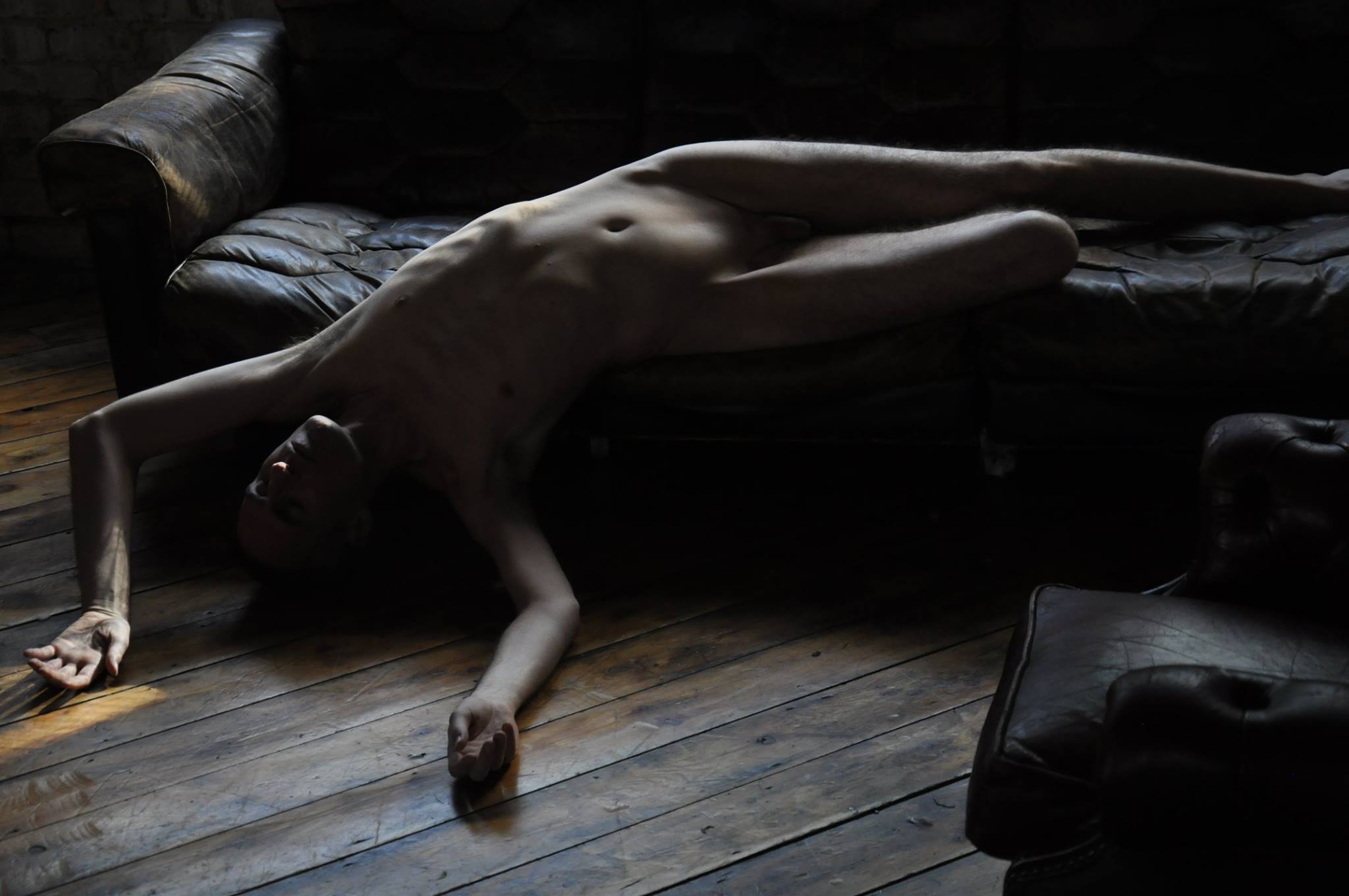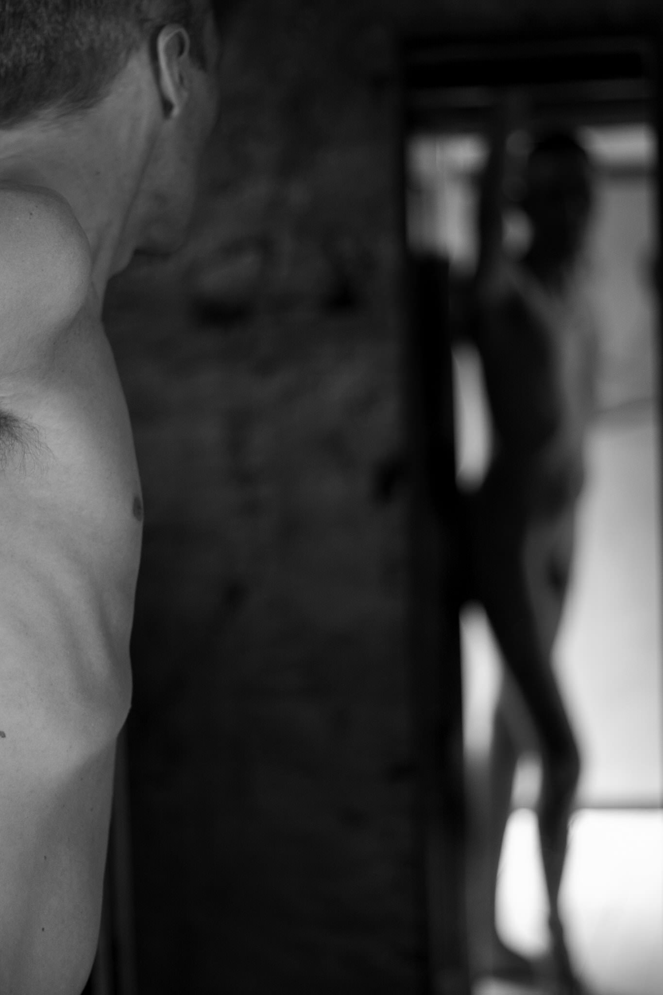 Occasionally the magic of a great shot would about by pure chance. For instance, during the development of a floor pose in which I would appear gently to lift Louise’s limp body, an unknown person picked up Phil’s unattended camera and captured the image below. It was an opportunist act that found the perfect angle at the perfect moment.