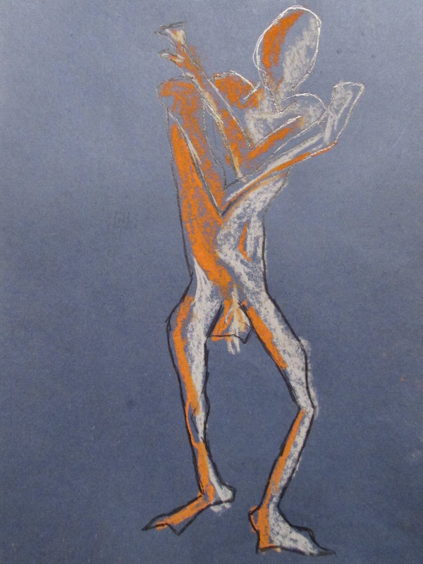 The occasion was a return visit to The Cambria for two hours’ worth of short poses. Artist numbers were down slightly on previous visits, with just nine here to draw, but the ambiance was engaging and relaxed. As always, it was a pleasure to work with Tatiana, organiser of Camberwell Life Drawing – one of London’s long-established model-run life drawing groups.